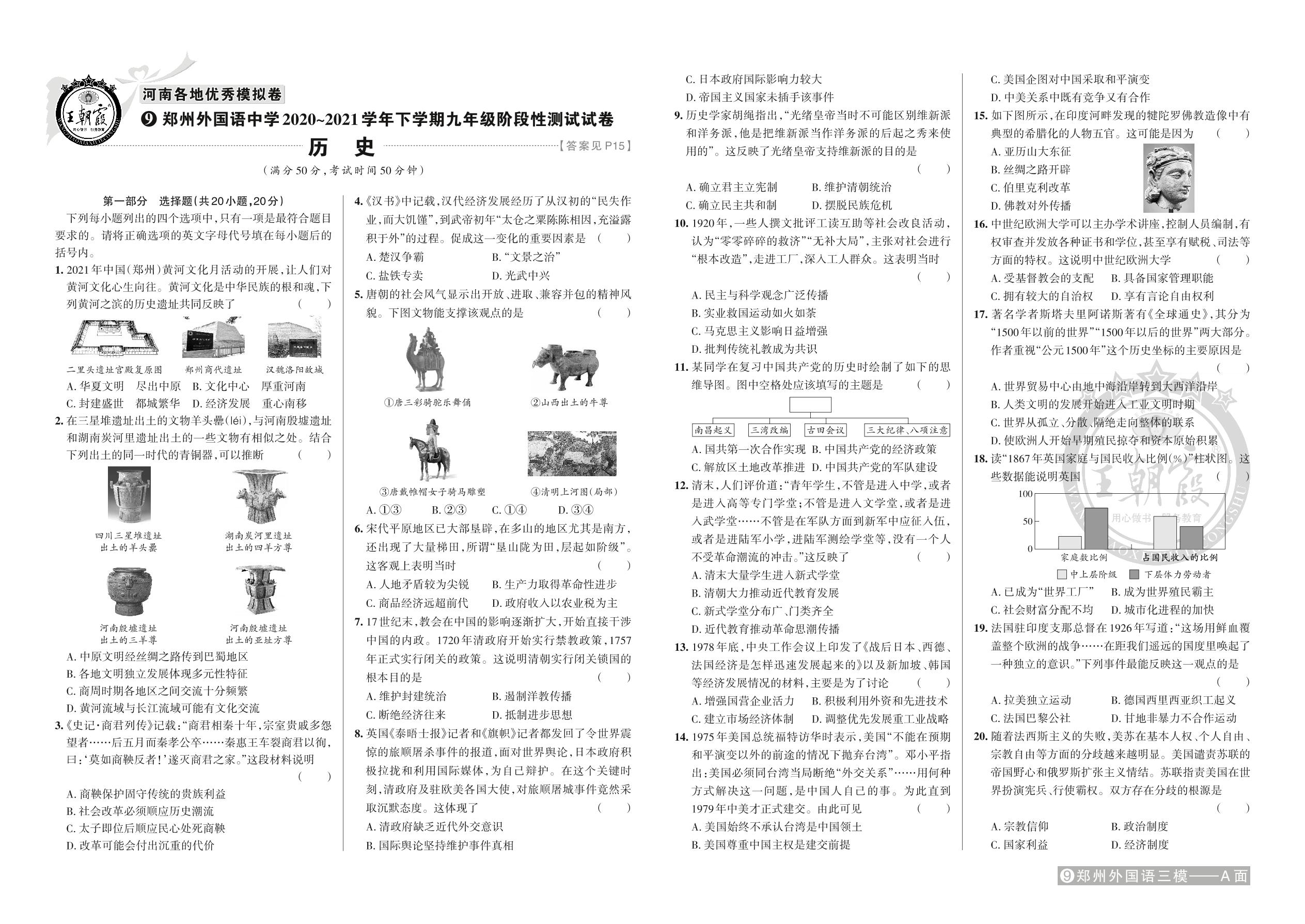 郑州外国语中学2020~2021学年下学期九年级阶段性测试试卷·历史【9】