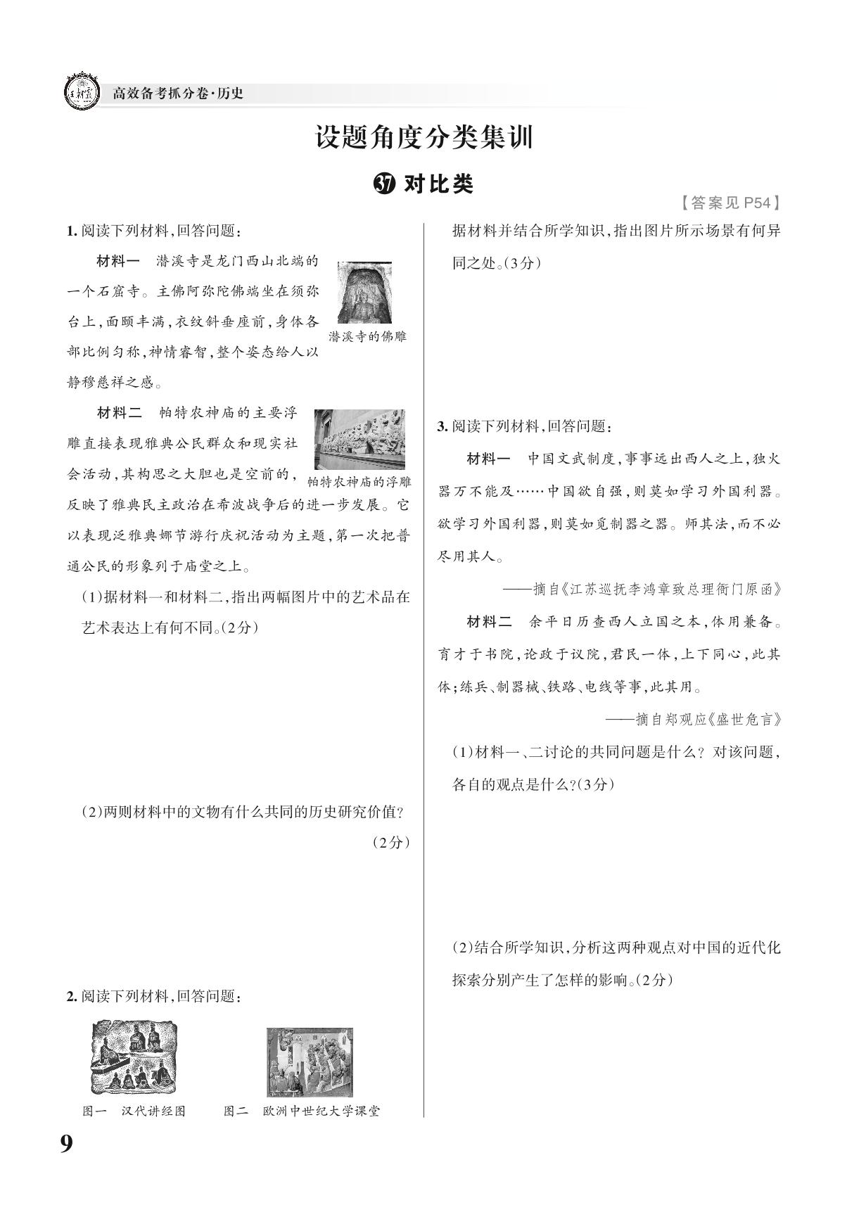 中考历史设题角度分类集训——对比类【37】
