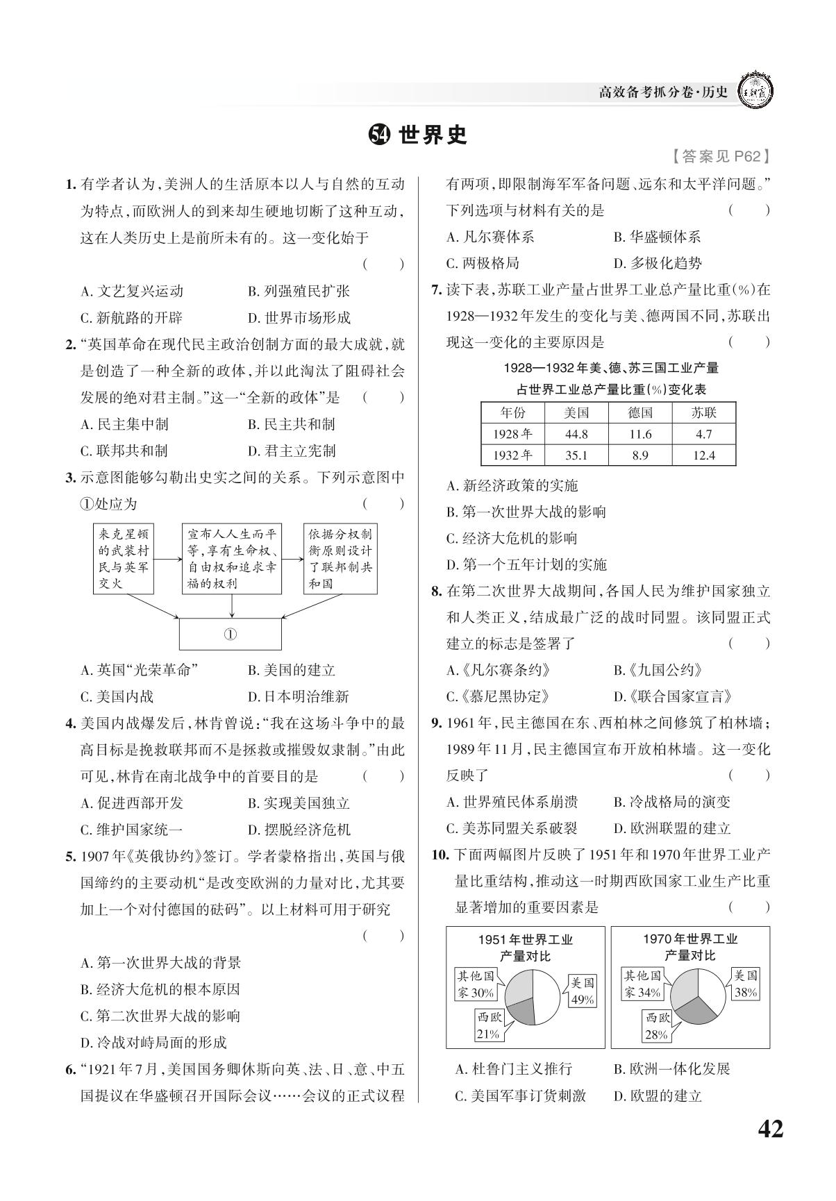 中考历史2022周年热点集训——世界史【54】