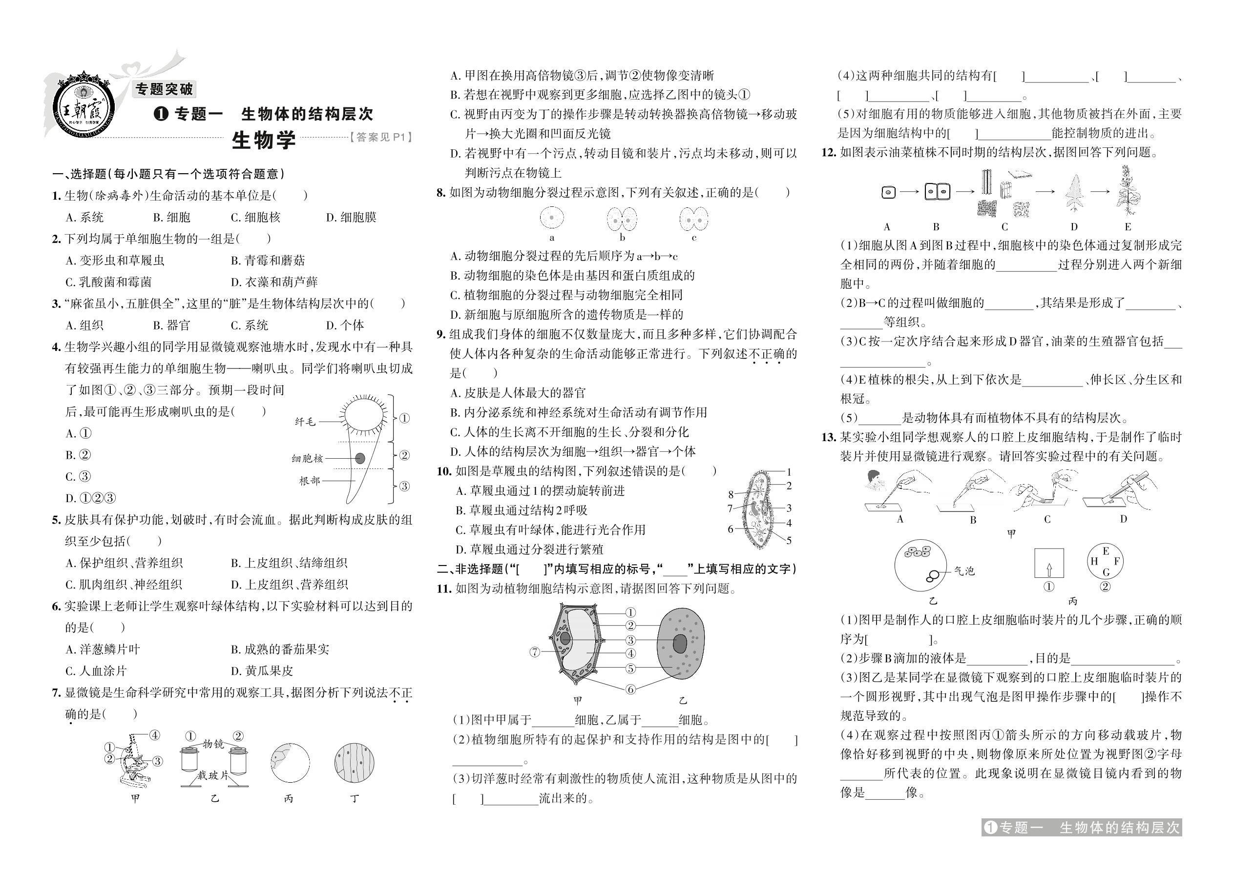 中考生物专题突破——专题一 生物体的结构层次【1】
