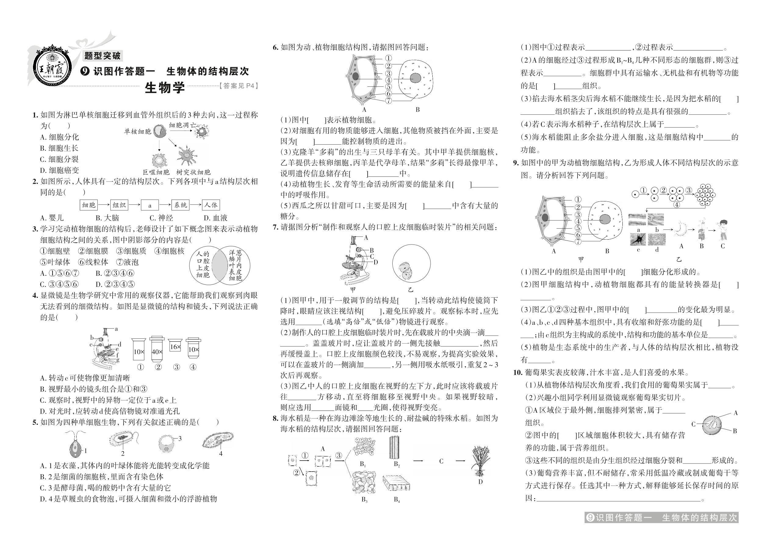 中考生物题型突破——识图作答题一 生物体的结构层次【9】