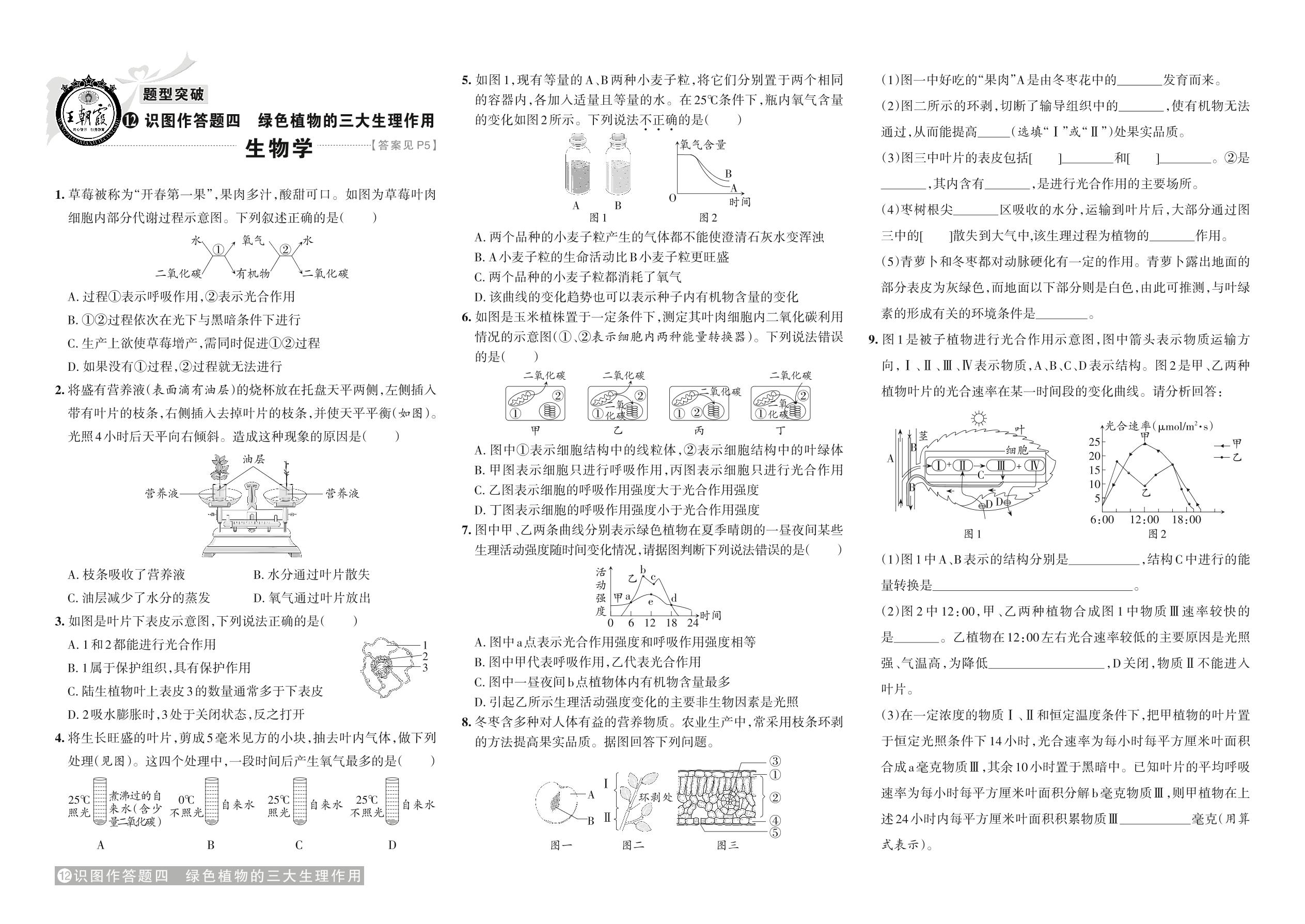 中考生物题型突破——识图作答题四 绿色植物的三大生理作用【12】