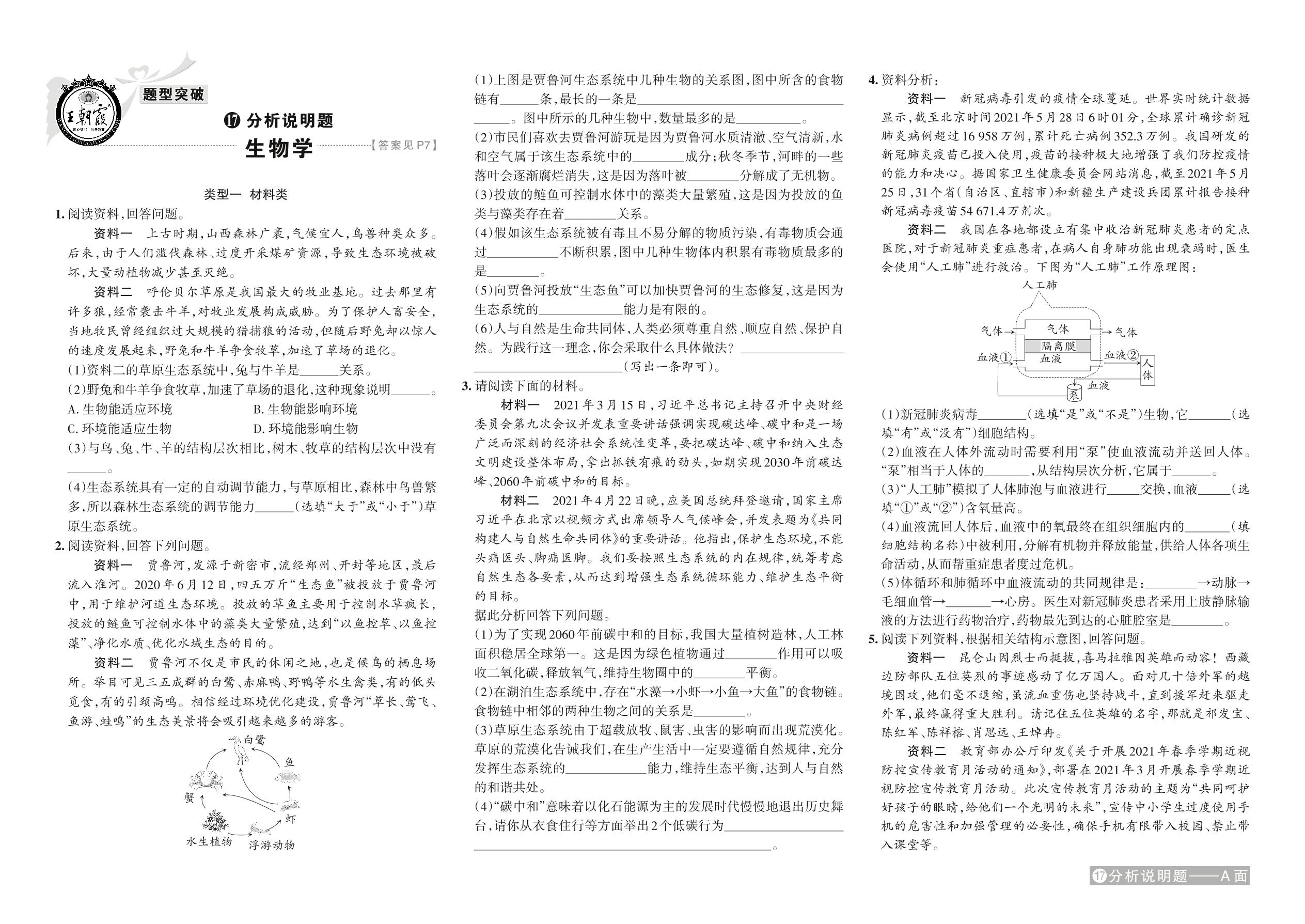 中考生物题型突破——分析说明题 材料类、科普类【17】