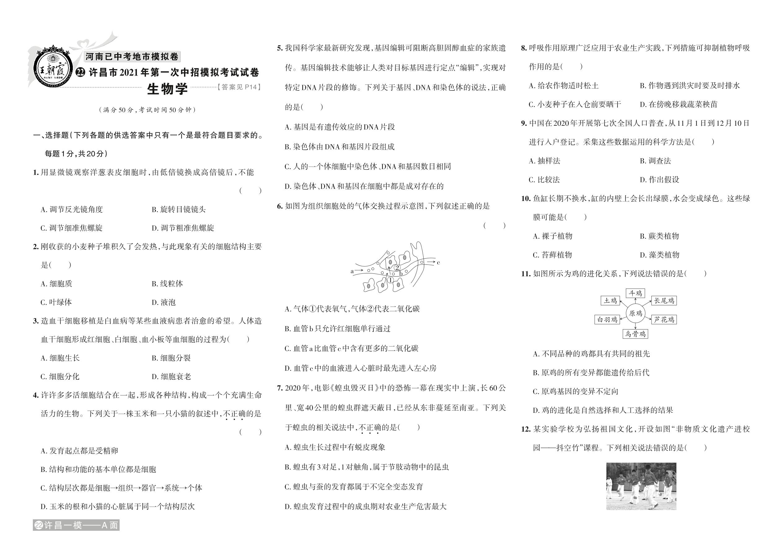 许昌市2021年第一次中招模拟考试试卷·生物【22】