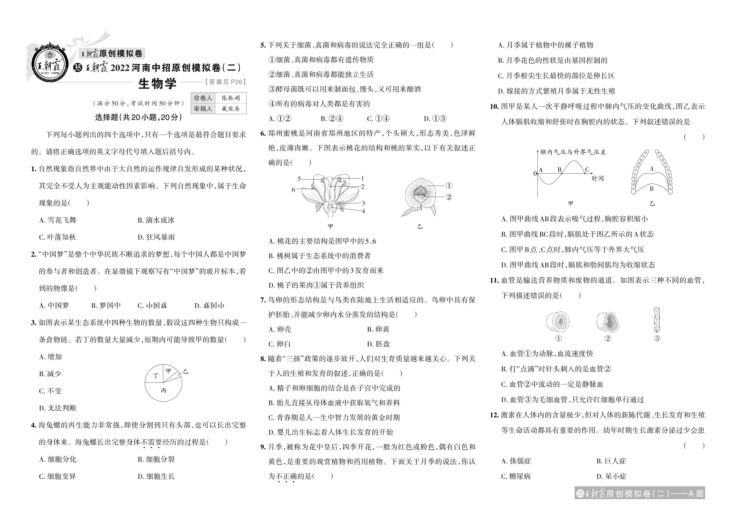 王朝霞2022河南中招原创模拟卷(二)·生物【35】