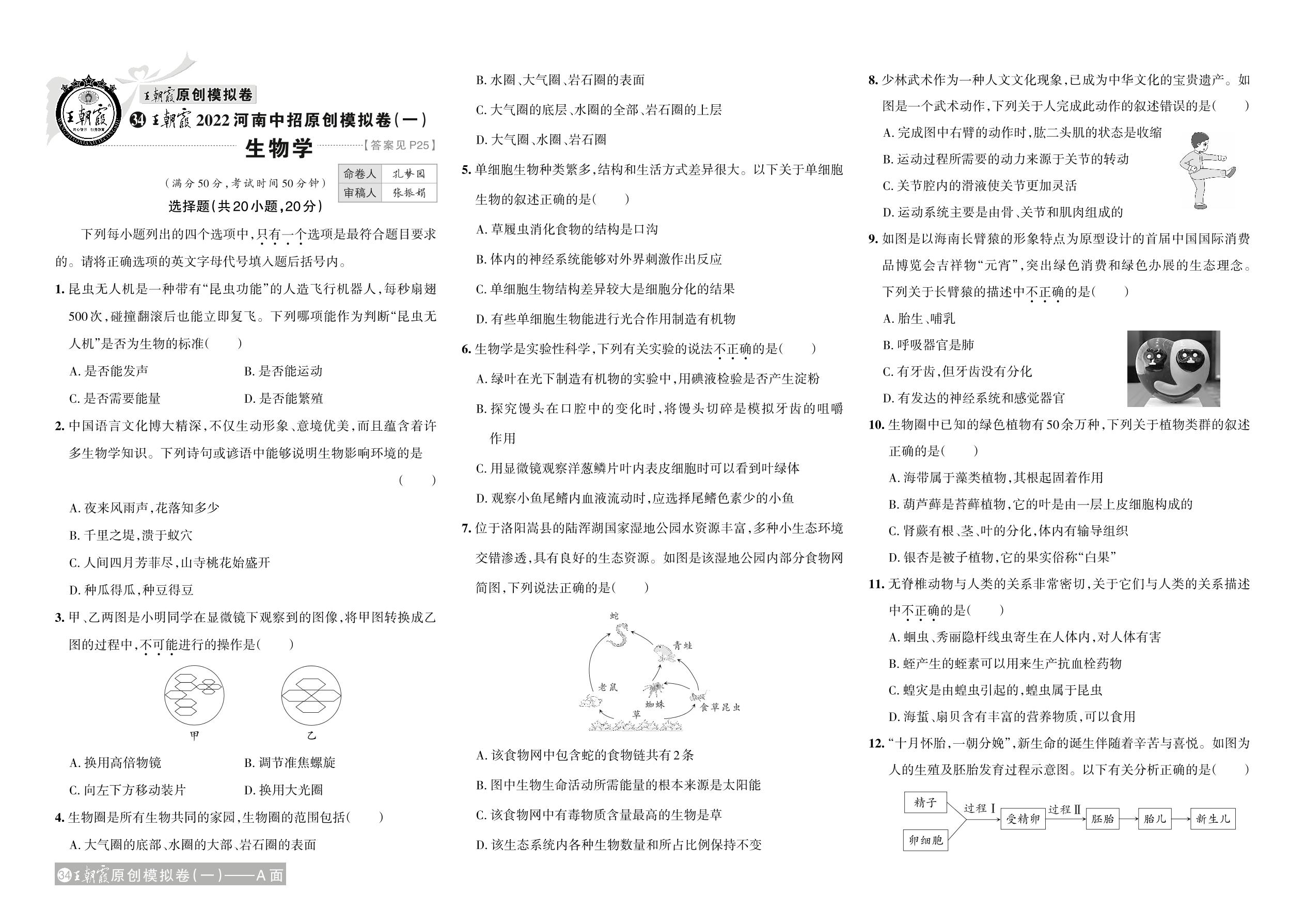 王朝霞2022河南中招原创模拟卷(一)·生物【34】