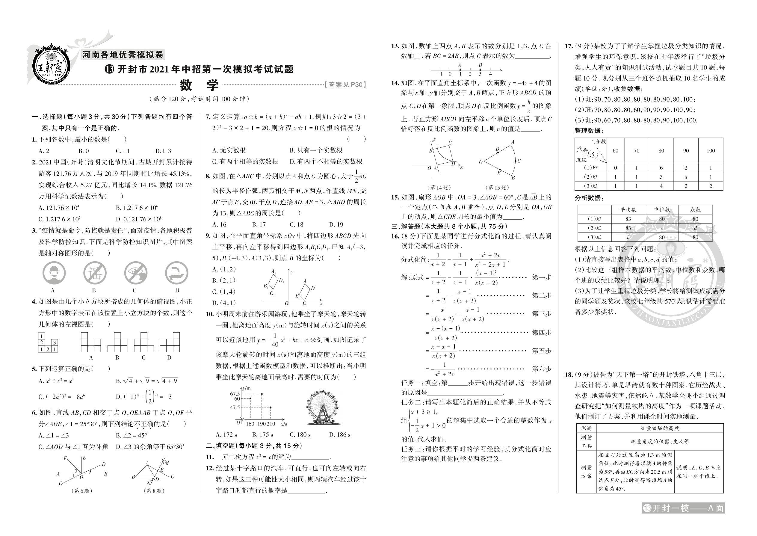 开封市2021年中招第一次模拟考试试题·数学【13】