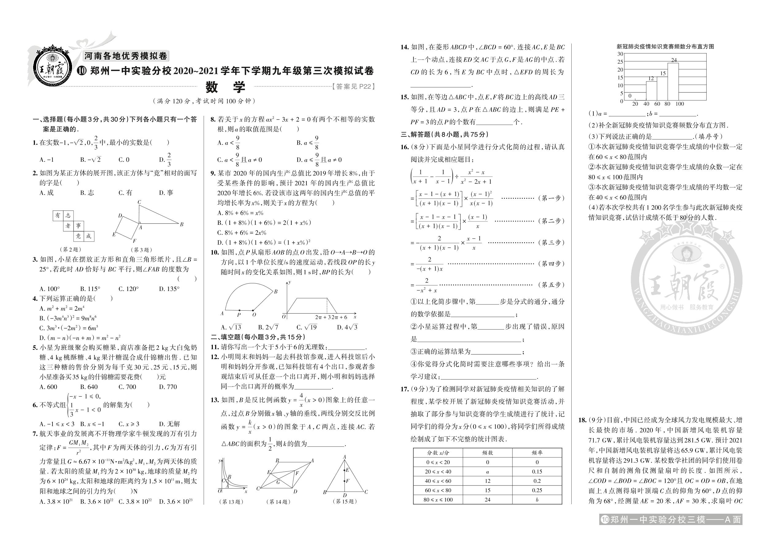 郑州一中实验分校2020~2021学年下学期九年级第三次模拟试卷·数学【10】