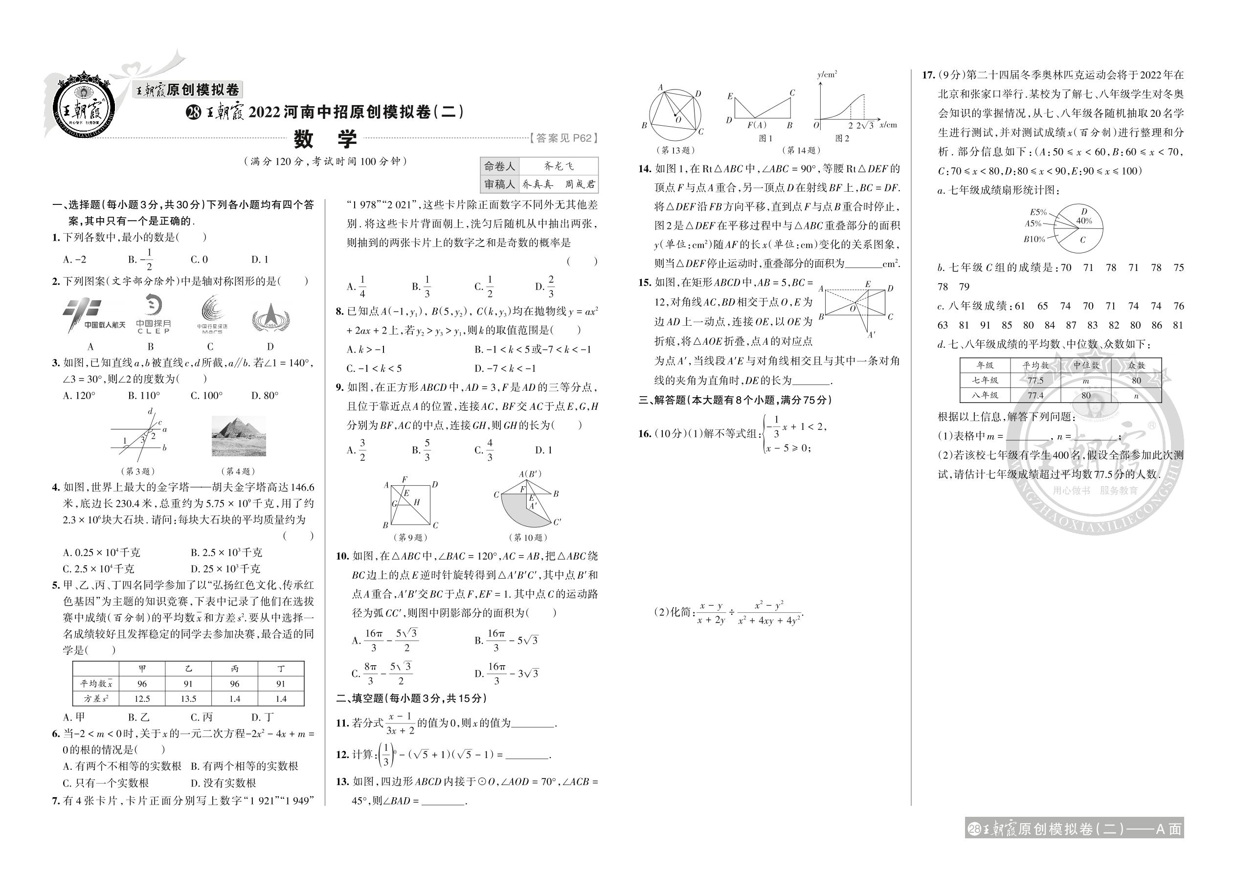 王朝霞2022河南中招原创模拟卷(二)·数学【28】