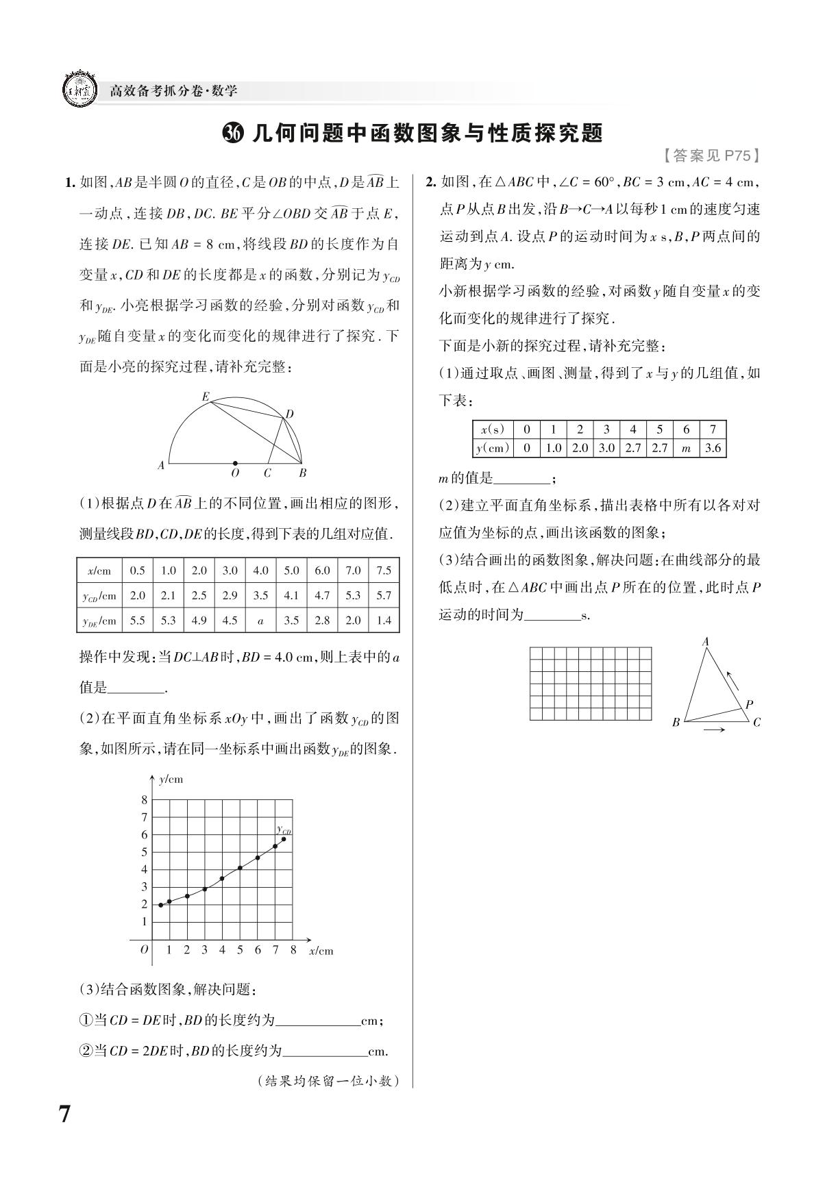 2020、2021河南中考数学新增题型集训——几何问题中函数图象与性质探究题 【36】