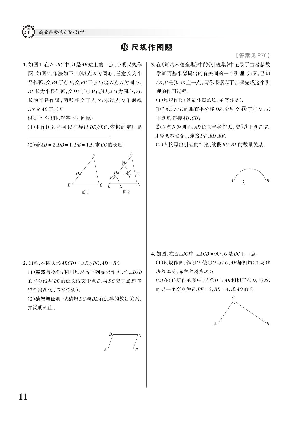 2020、2021河南中考数学新增题型集训——尺规作图题【38】
