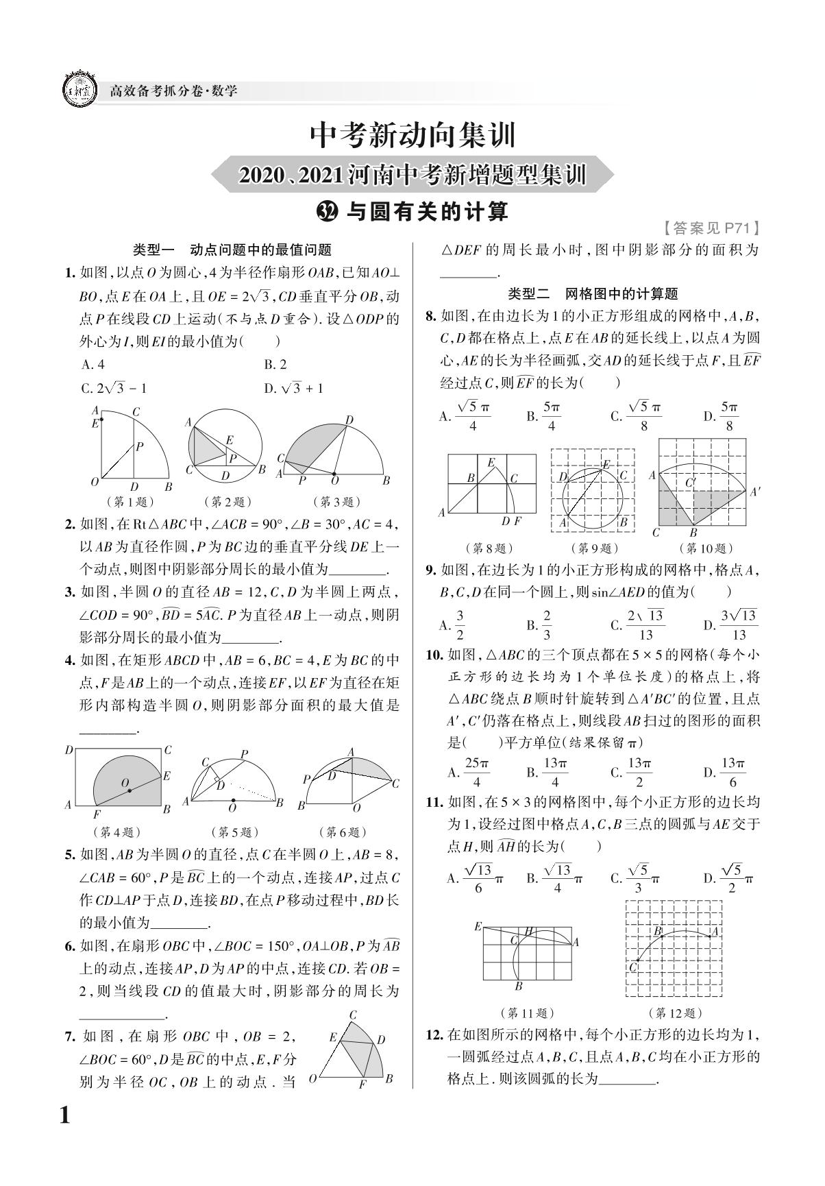 2020、2021河南中考数学新增题型集训——与圆有关的计算 【32】