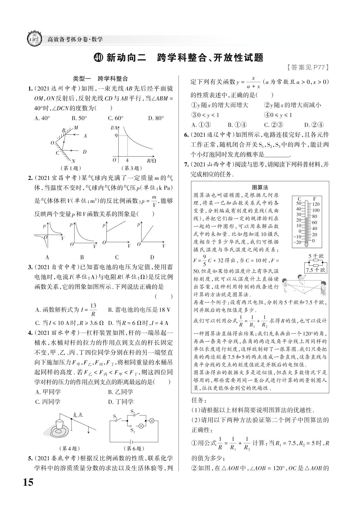 全国中考数学新动向集训——新动向二 跨学科整合、开放性试题【40】