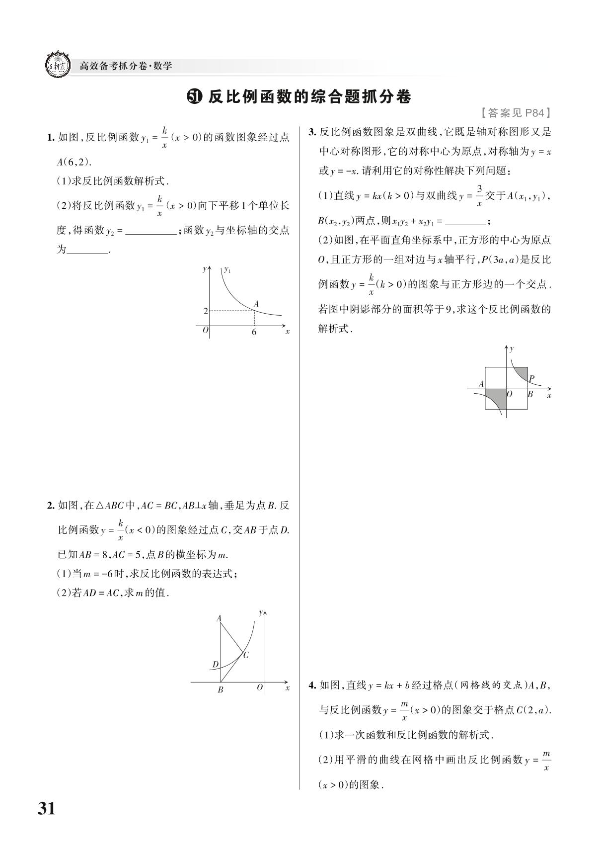 中考数学题型分类抓分卷——反比例函数的综合题抓分卷【51】