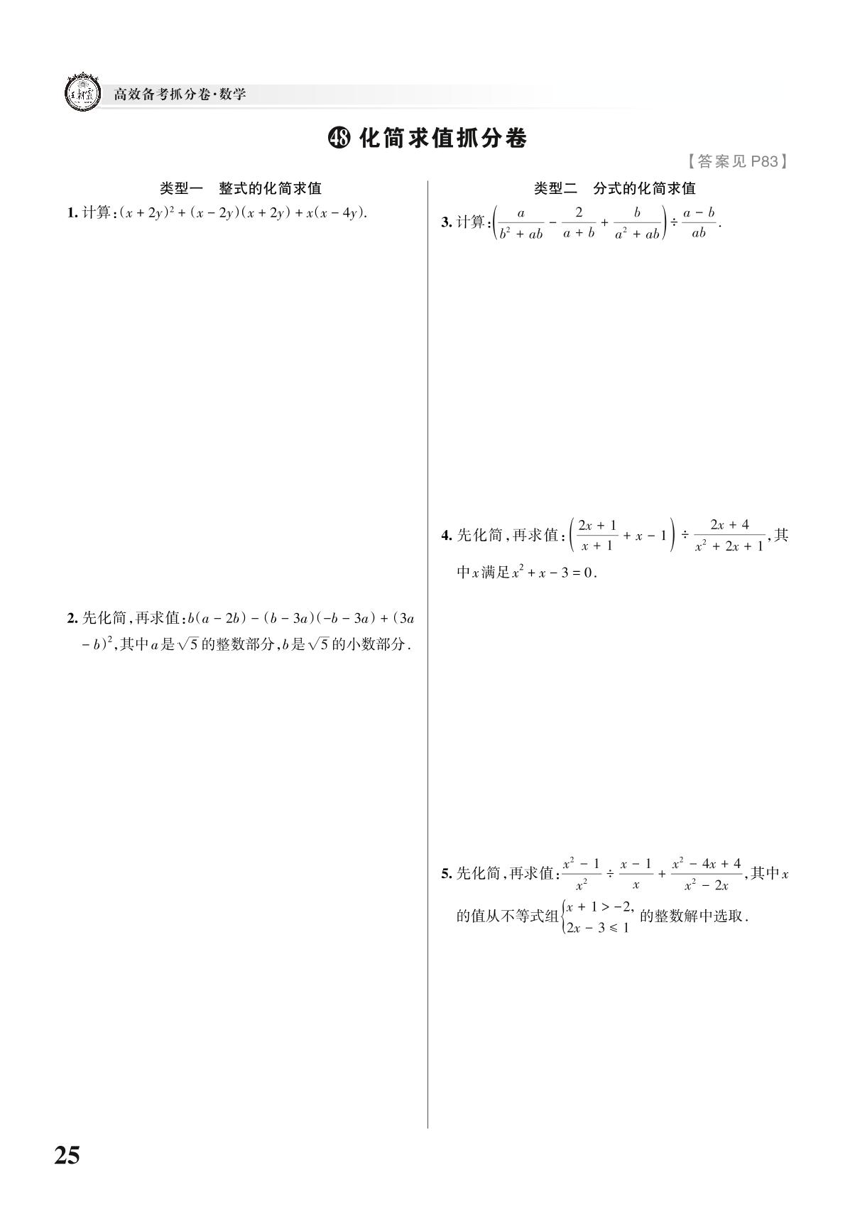 中考数学题型分类抓分卷——化简求值抓分卷【48】