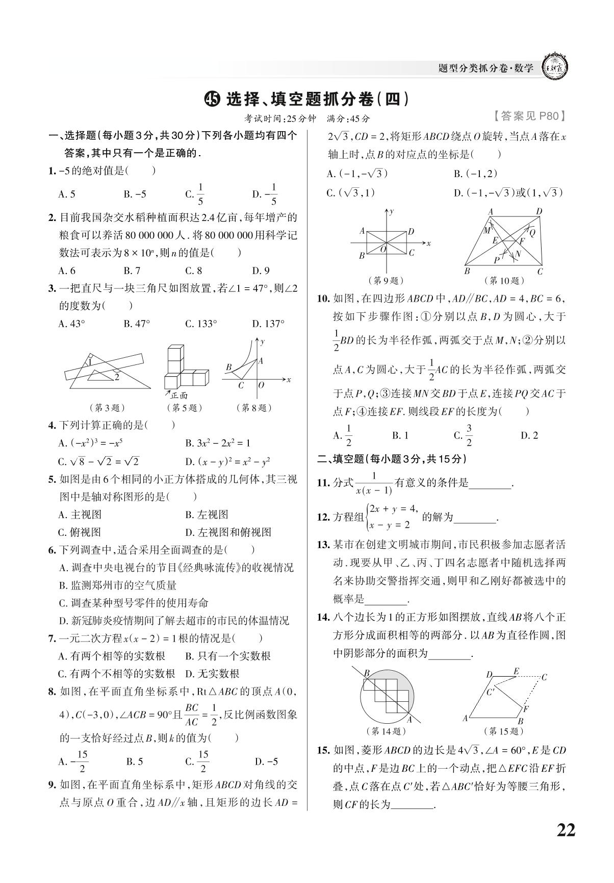 中考数学题型分类抓分卷——选择、填空题抓分卷(四)【45】