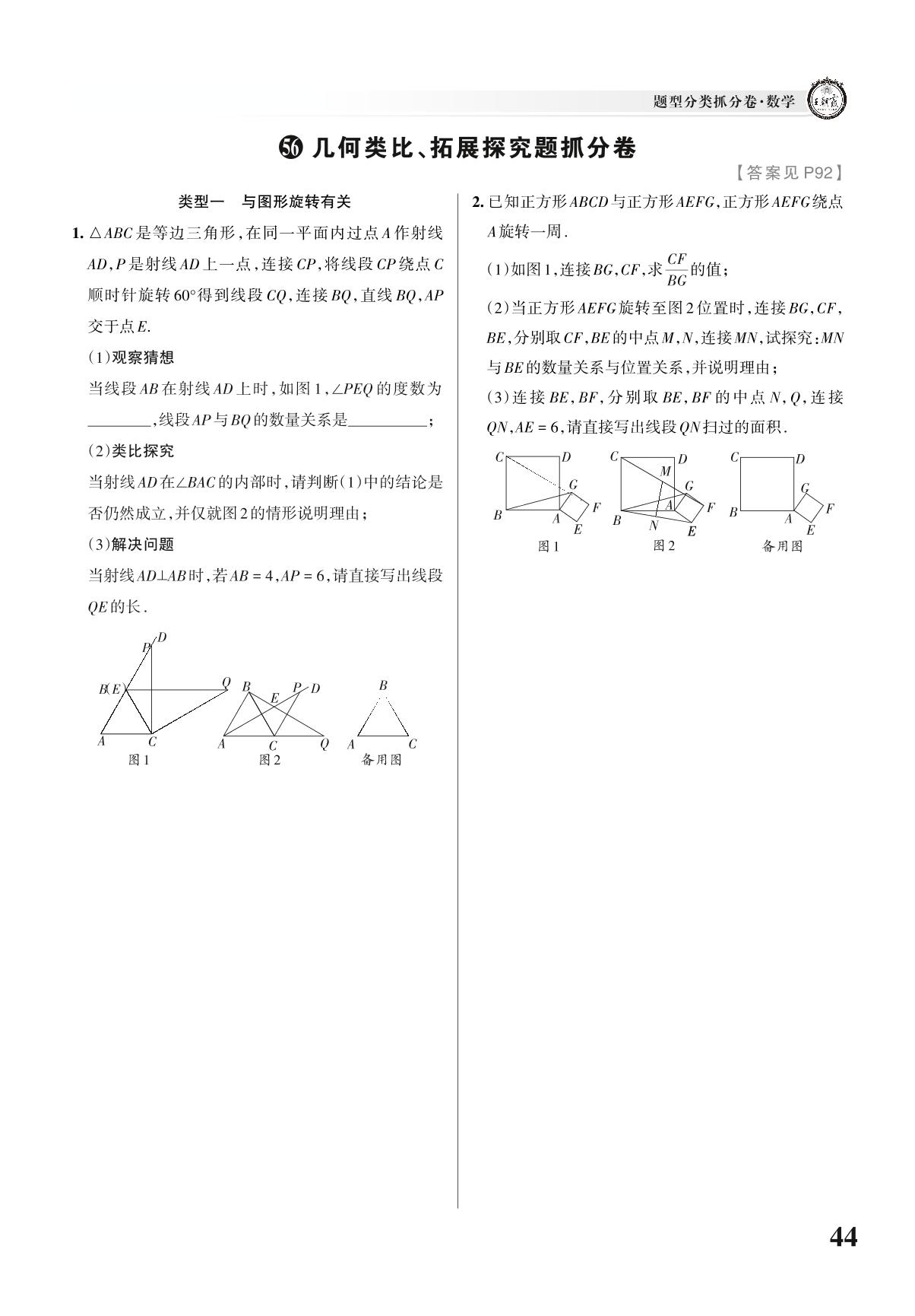 中考数学题型分类抓分卷——几何类比、拓展探究题抓分卷【56】