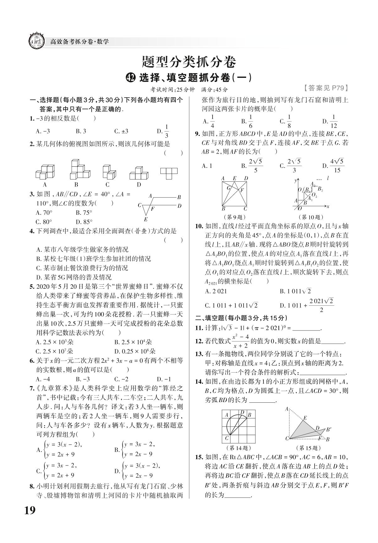 中考数学题型分类抓分卷——选择、填空题抓分卷(一)【42】