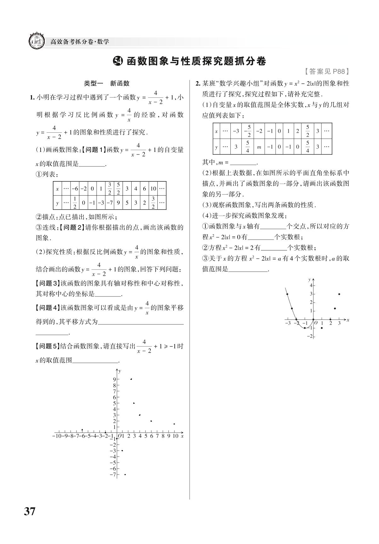 中考数学题型分类抓分卷——函数图象与性质探究题抓分卷【54】