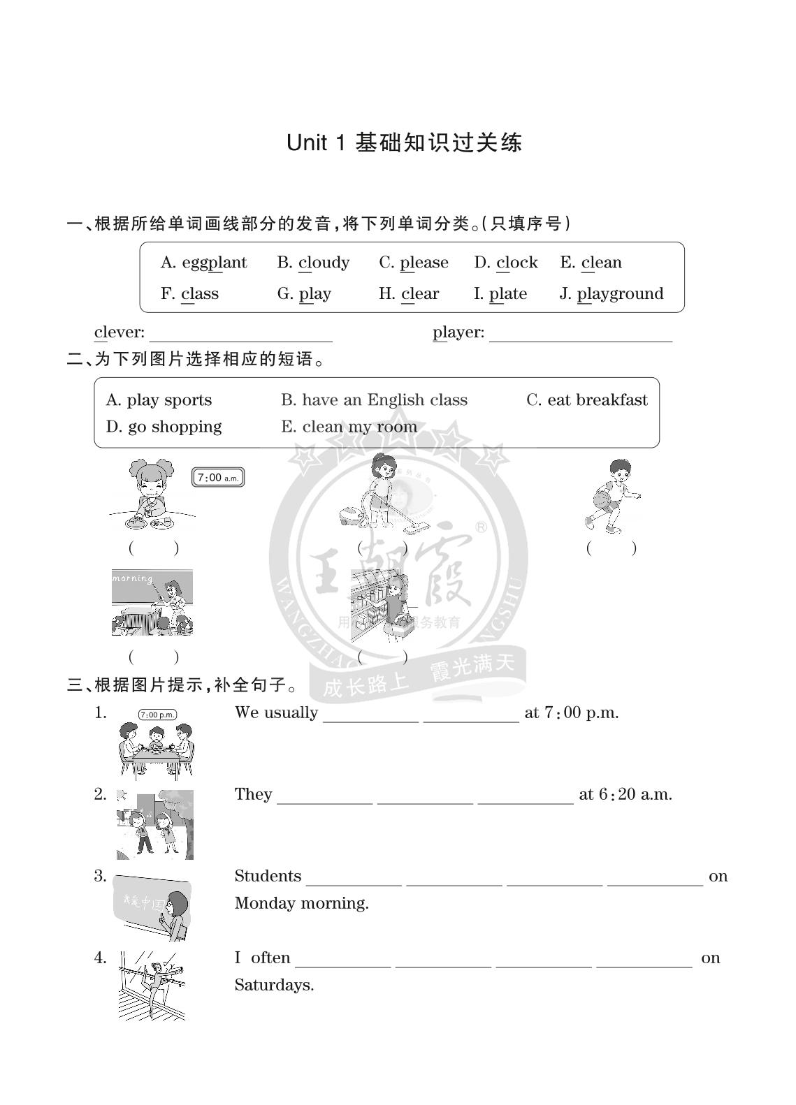 五年级英语下册基础知识过关练(1-3单元)PEP版