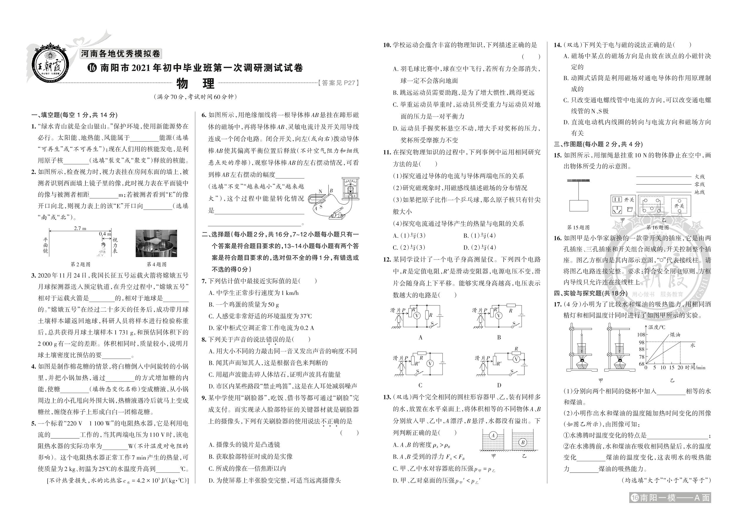 南阳市2021年初中毕业班第一次调研测试试卷·物理【16】