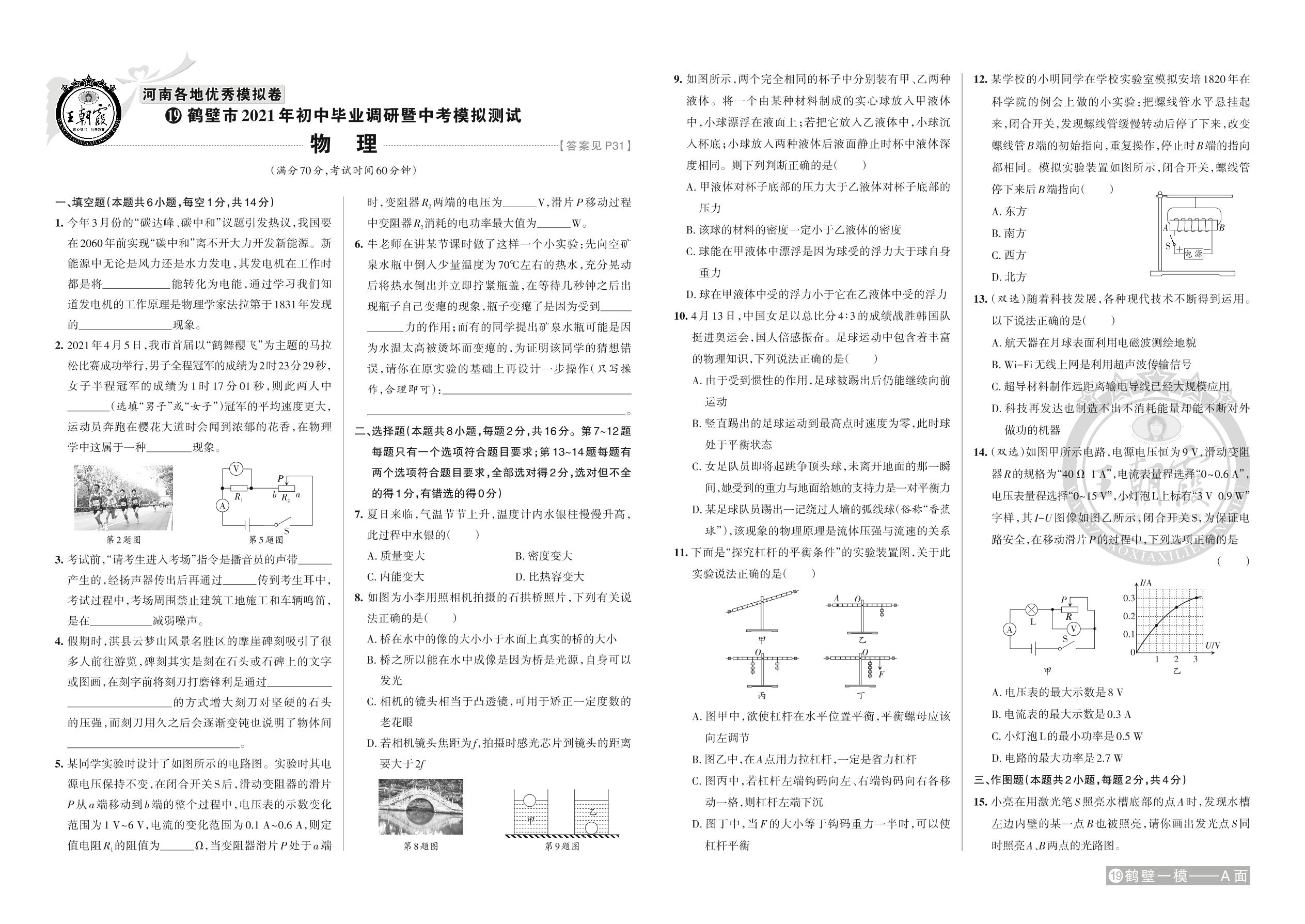 鹤壁市2021年初中毕业调研暨中考模拟测试·物理【19】