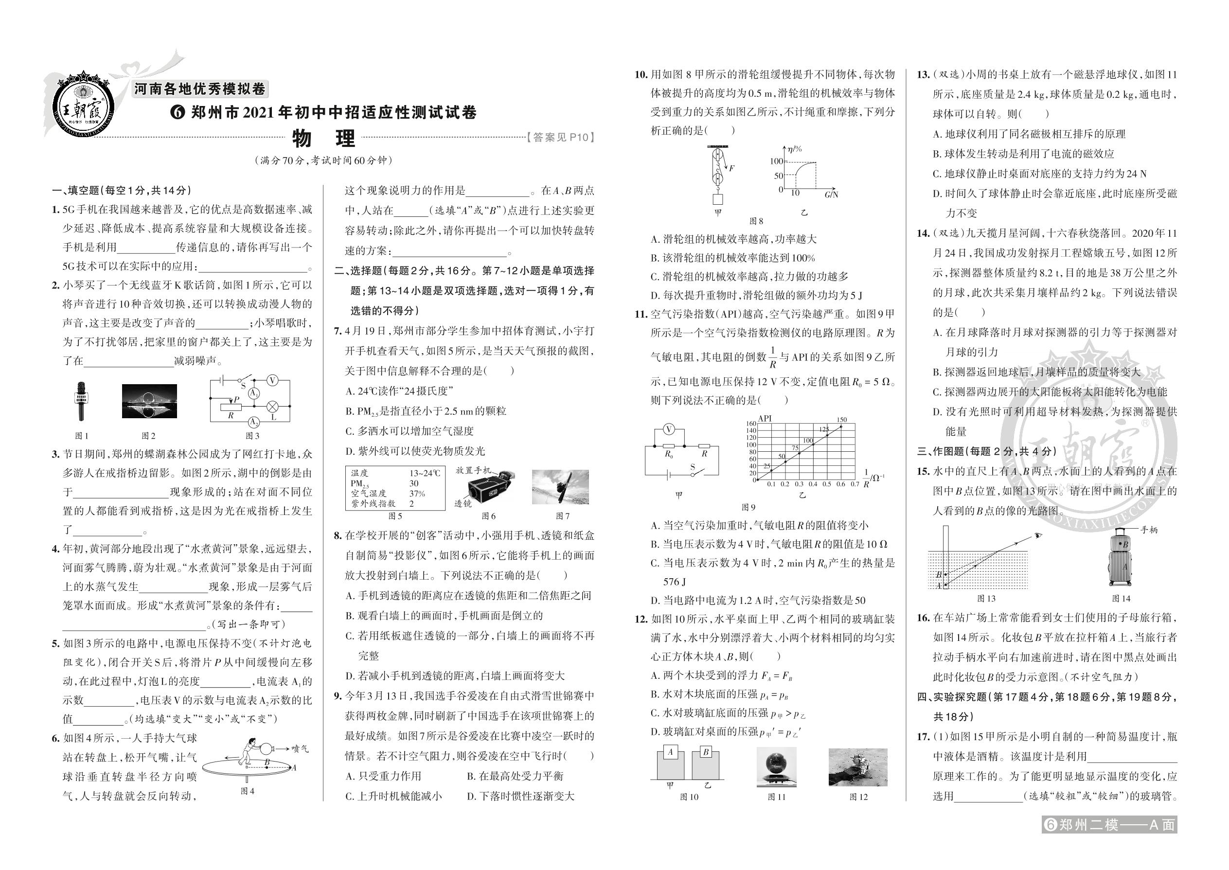 郑州市2021年初中中招适应性测试试卷·物理【6】