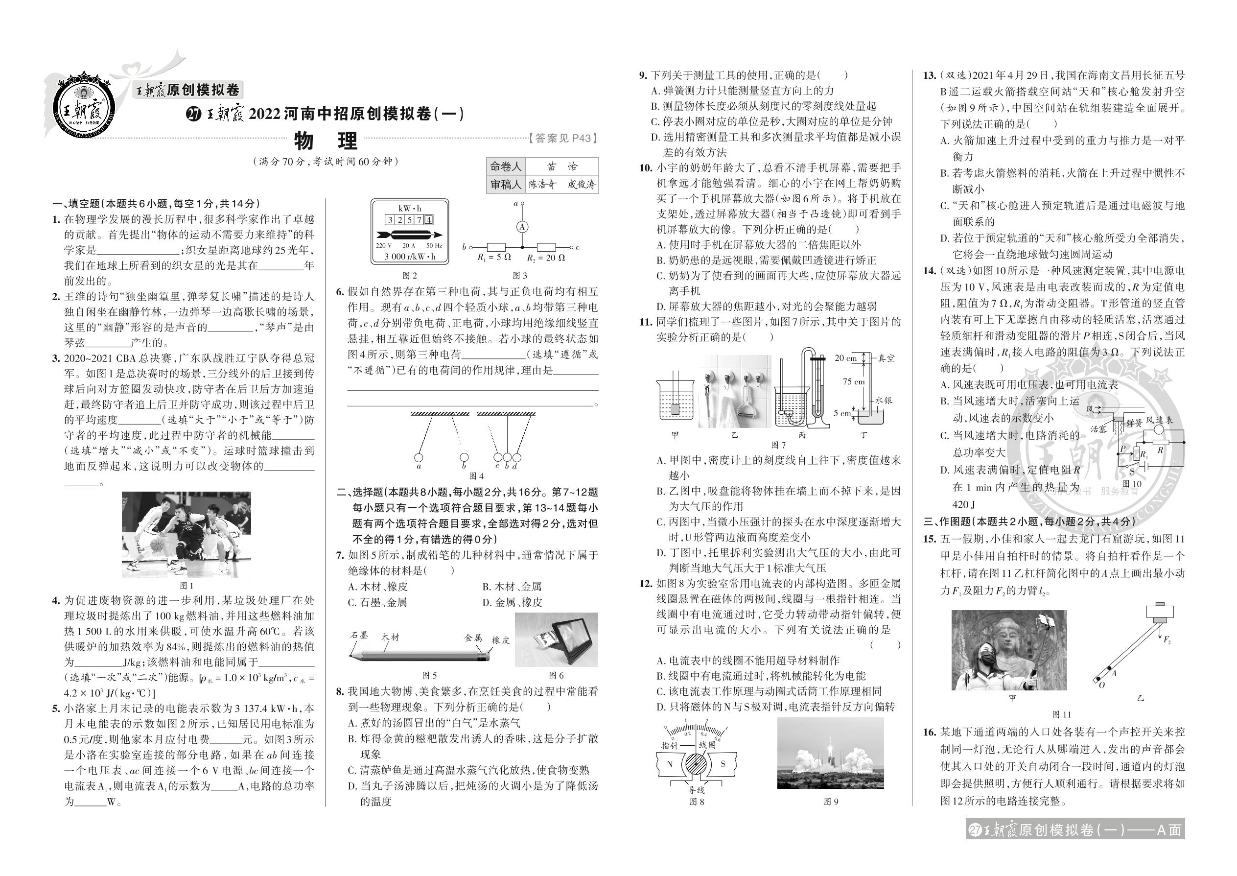 王朝霞2022河南中招原创模拟卷(一)·物理【27】