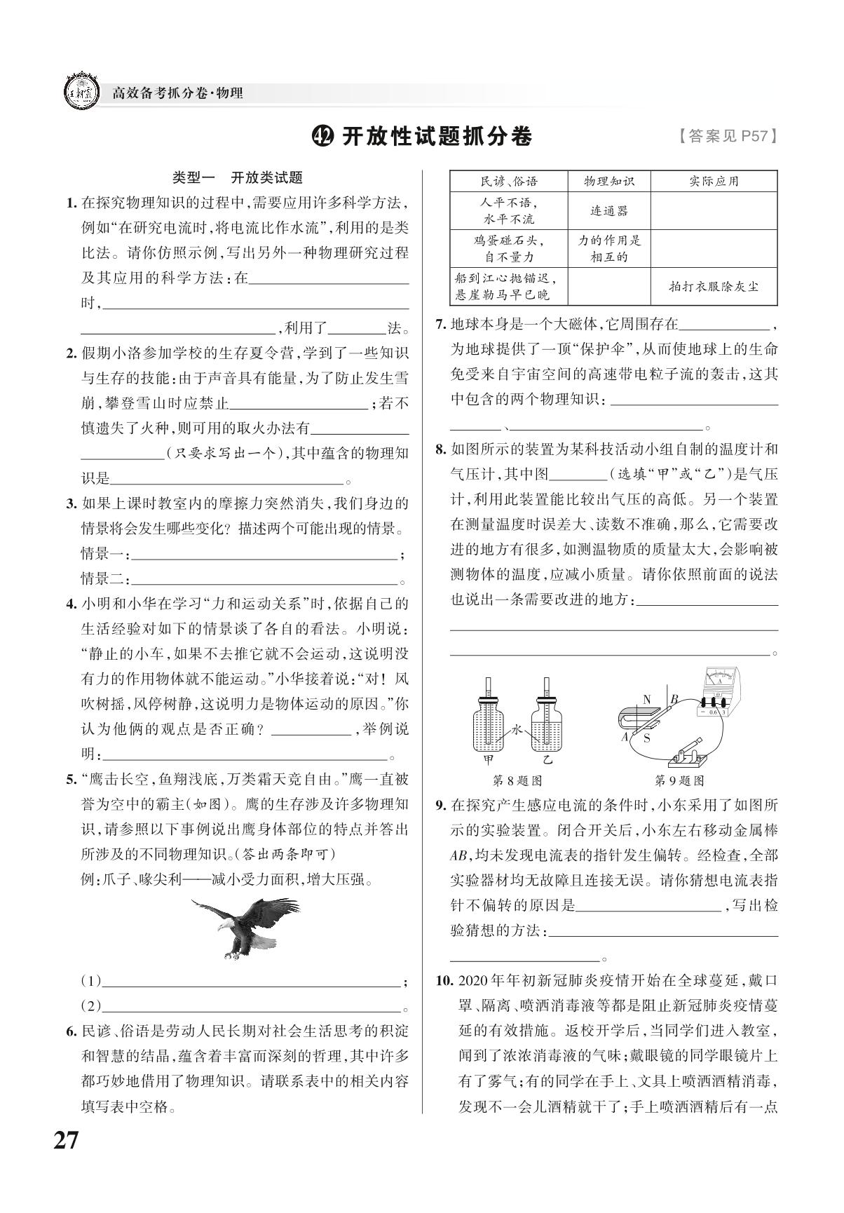 中考物理河南特点抓分卷——开放性试题抓分卷【42】