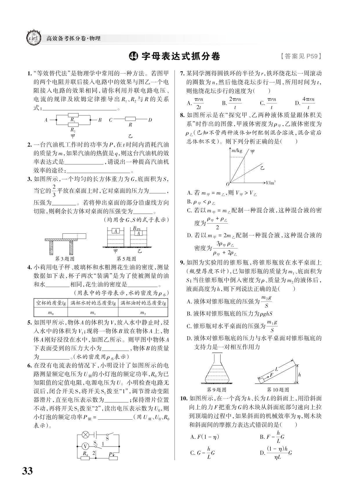 中考物理河南特点抓分卷——字母表达式抓分卷【44】