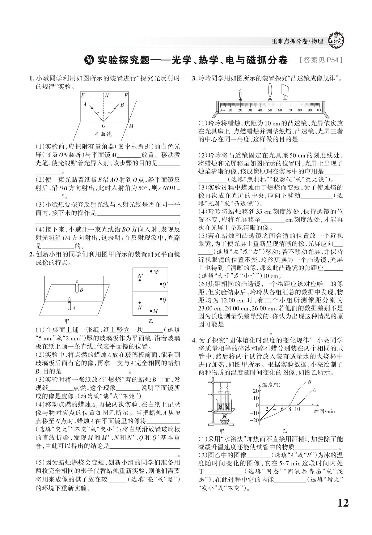 中考物理题型分类抓分卷——实验探究题:光学、热学、电与磁抓分卷【36】