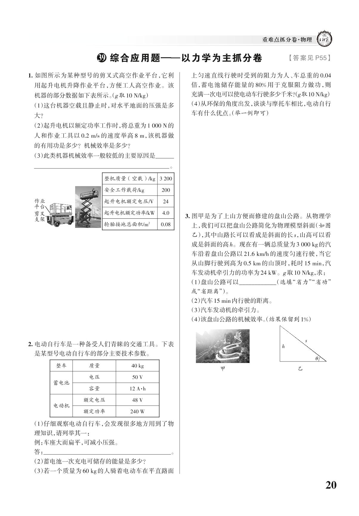 中考物理题型分类抓分卷——综合应用题:以力学为主抓分卷【39】