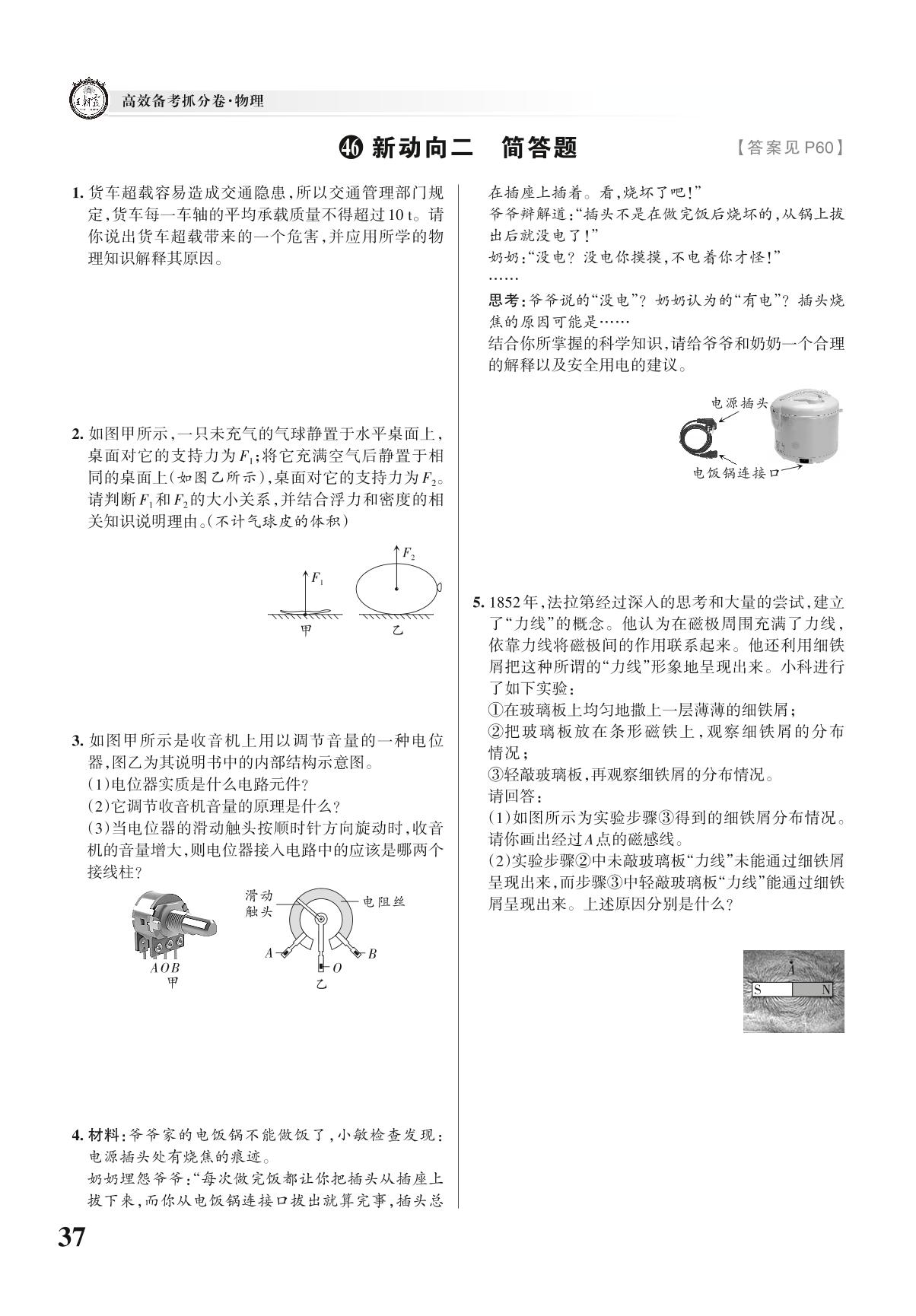 全国中考物理新动向——新动向二 简答题【46】