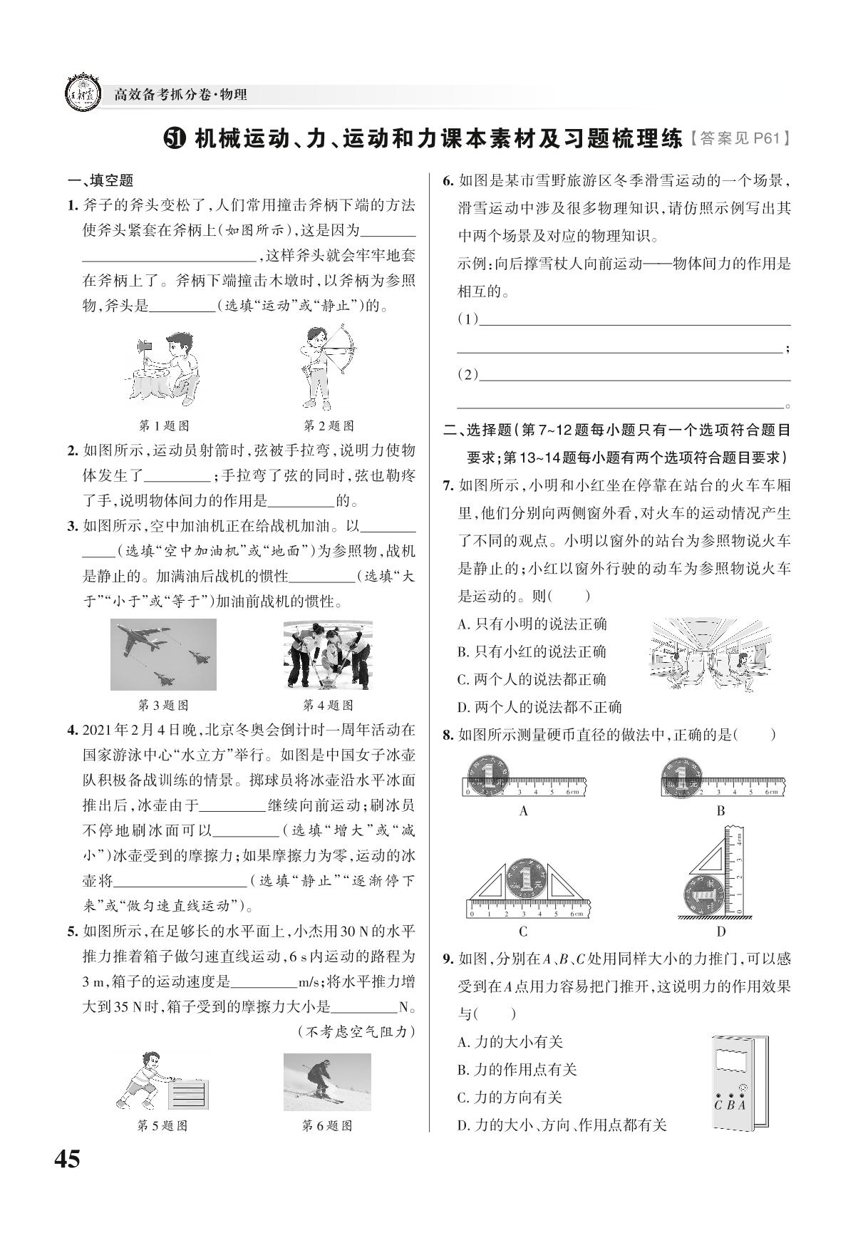 中考物理课本素材及习题梳理练——机械运动、力、运动和力课本素材及习题梳理练【51】