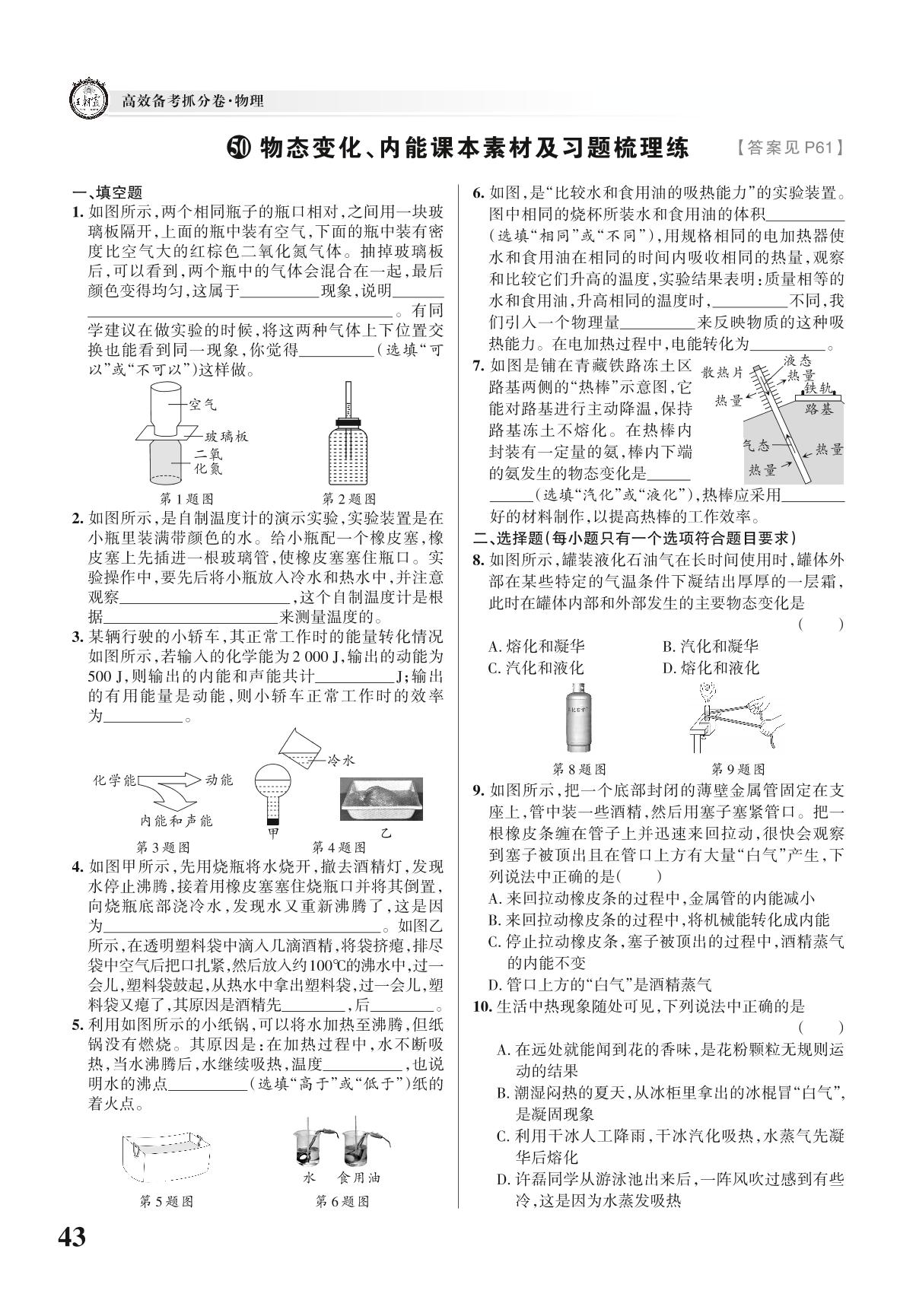 中考物理课本素材及习题梳理练——物态变化、内能课本素材及习题梳理练【50】