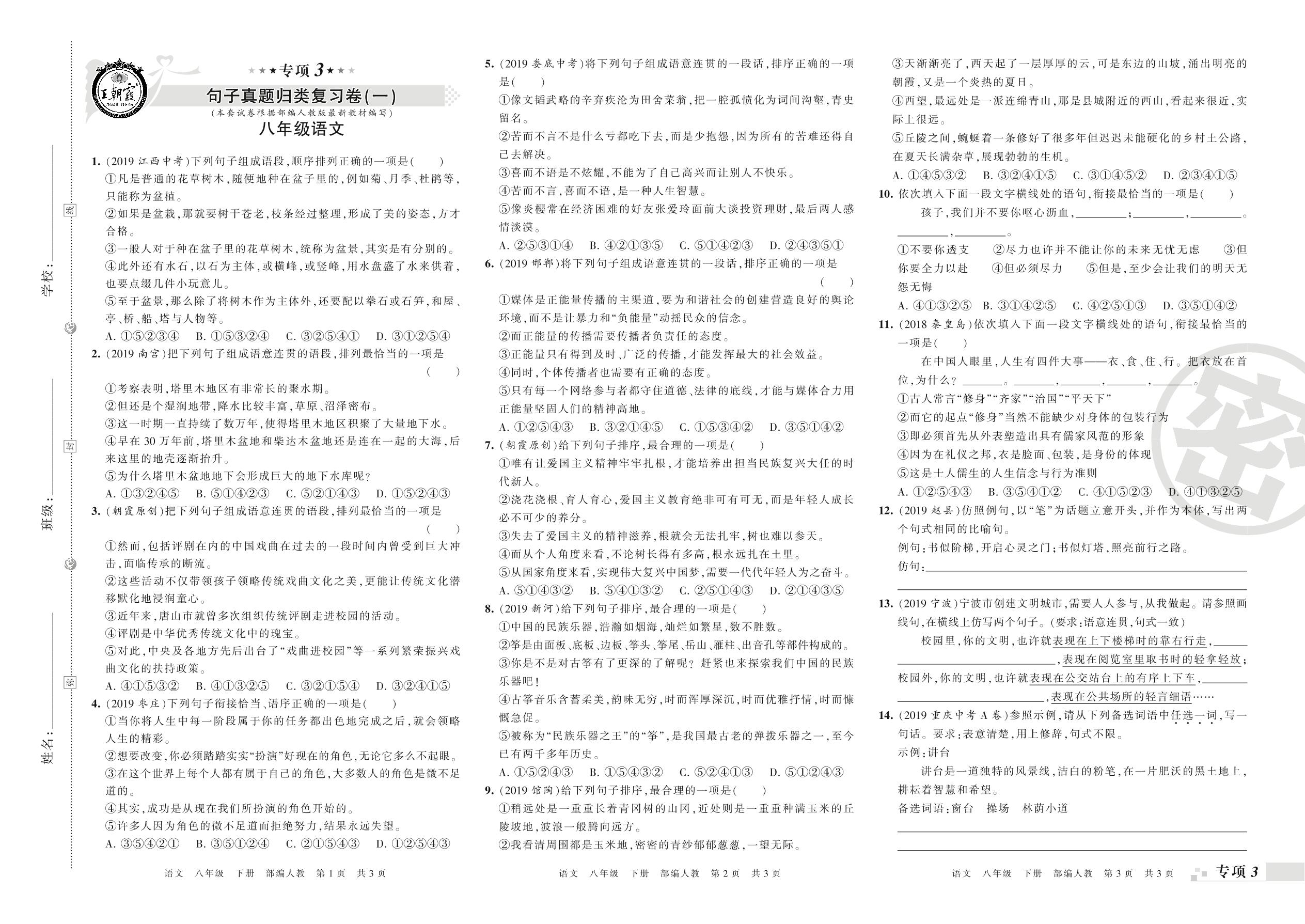 王朝霞期末专项卷——句子真题归类复习卷八年级下册语文(人教版)_R21080224414【0】