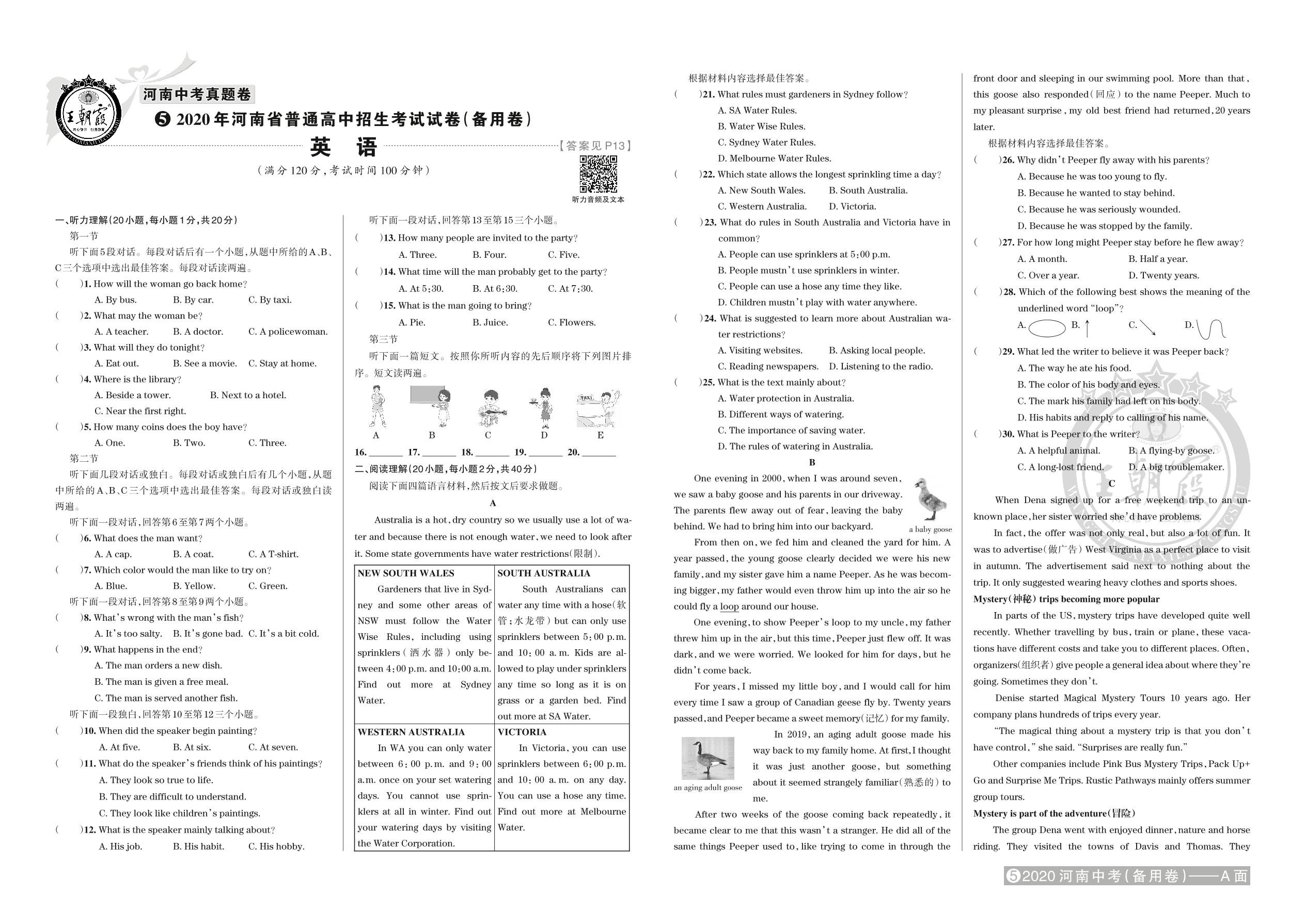 2020年河南省普通高中招生考试试卷(备用卷)·英语【5】