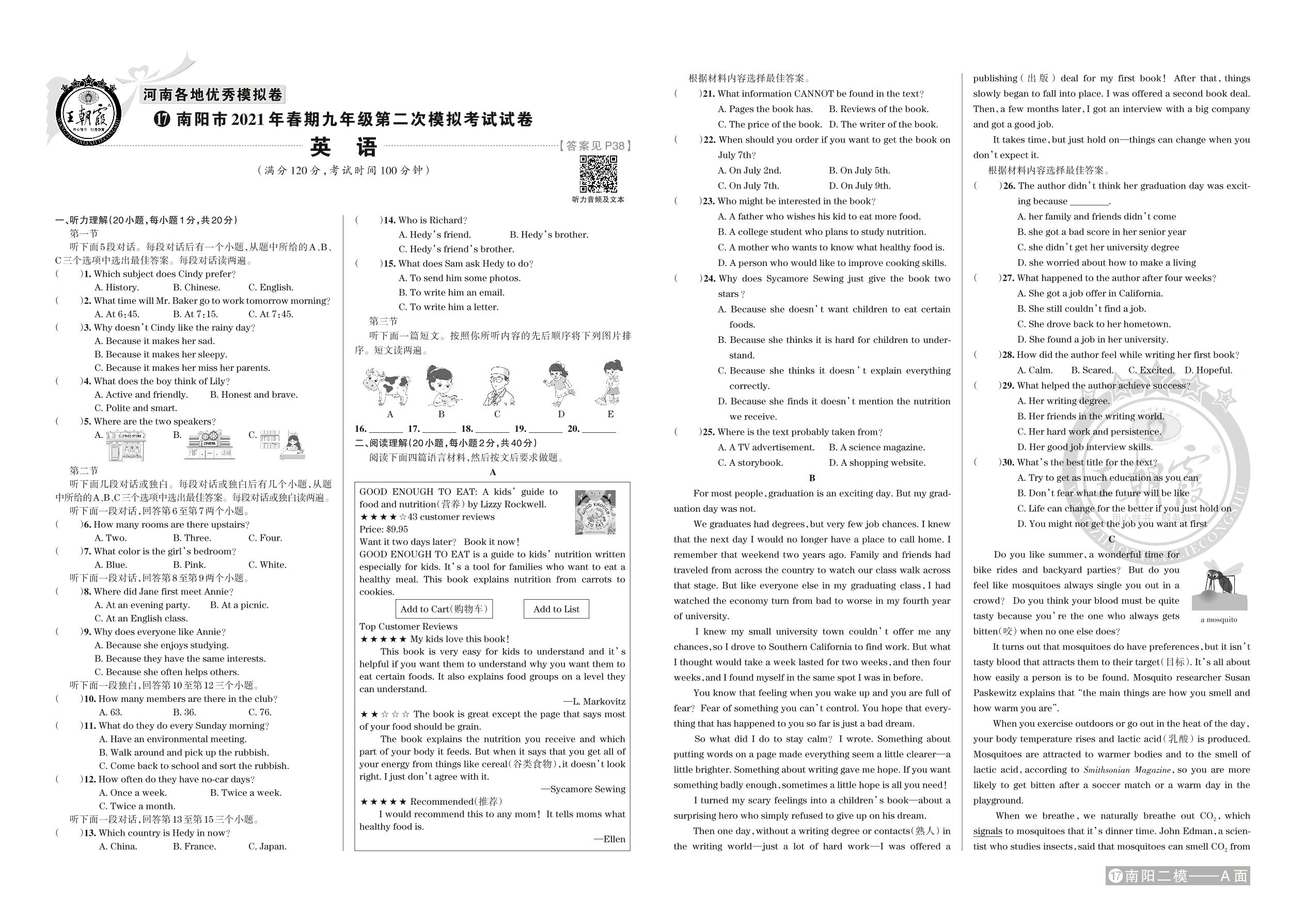 南阳市2021年春期九年级第二次模拟考试试卷·英语【17】
