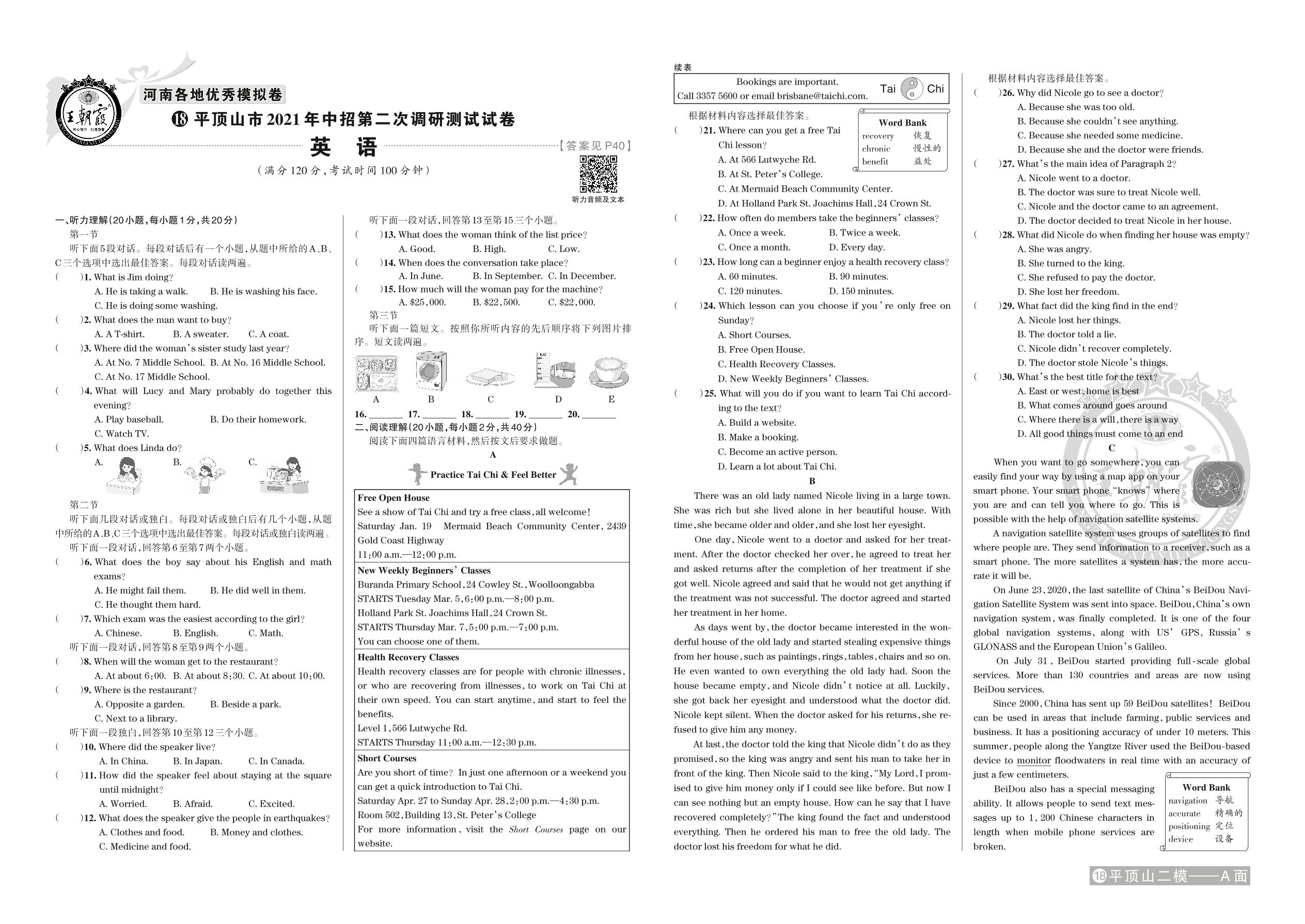 平顶山市2021年中招第二次调研测试试卷·英语【18】