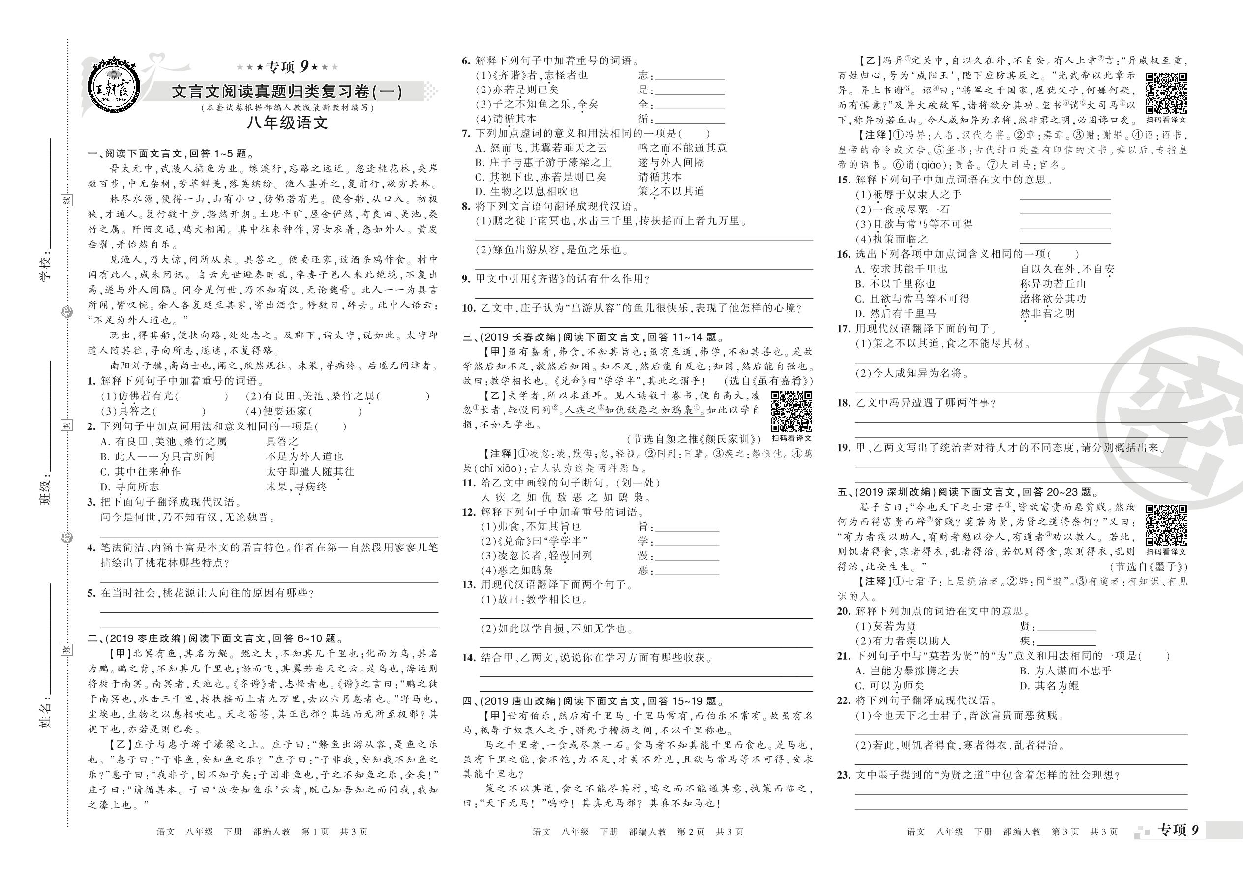 王朝霞期末专项卷——文言文阅读真题归类复习卷八年级下册语文(人教版)_R21080224438【0】