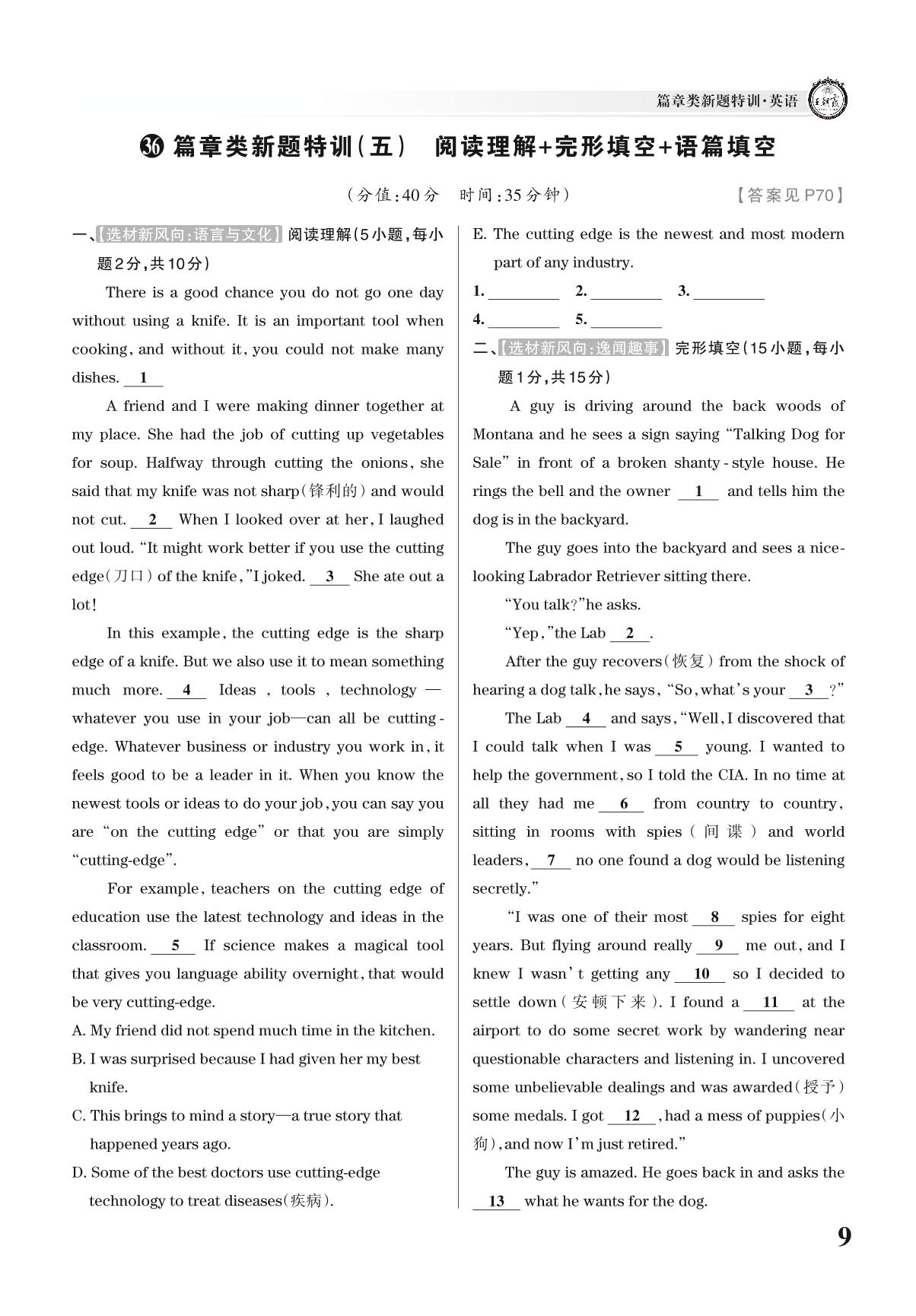 中考英语篇章类新题特训——篇章类新题特训(五)【阅读理解+完形填空+语篇填空】【36】