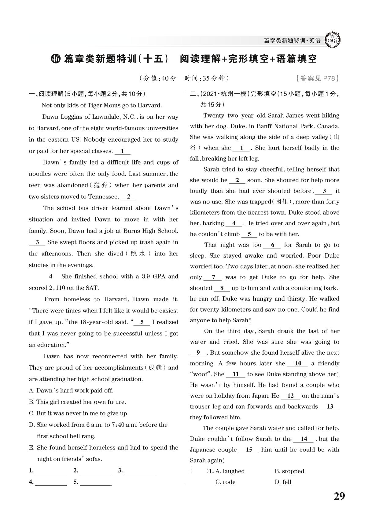中考英语篇章类新题特训——篇章类新题特训(十五)【阅读理解+完形填空+语篇填空】【46】