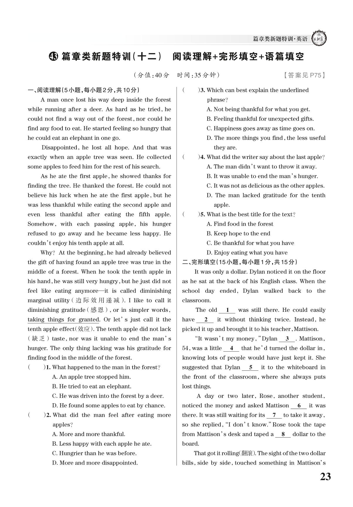 中考英语篇章类新题特训——篇章类新题特训(十二)【阅读理解+完形填空+语篇填空】【43】