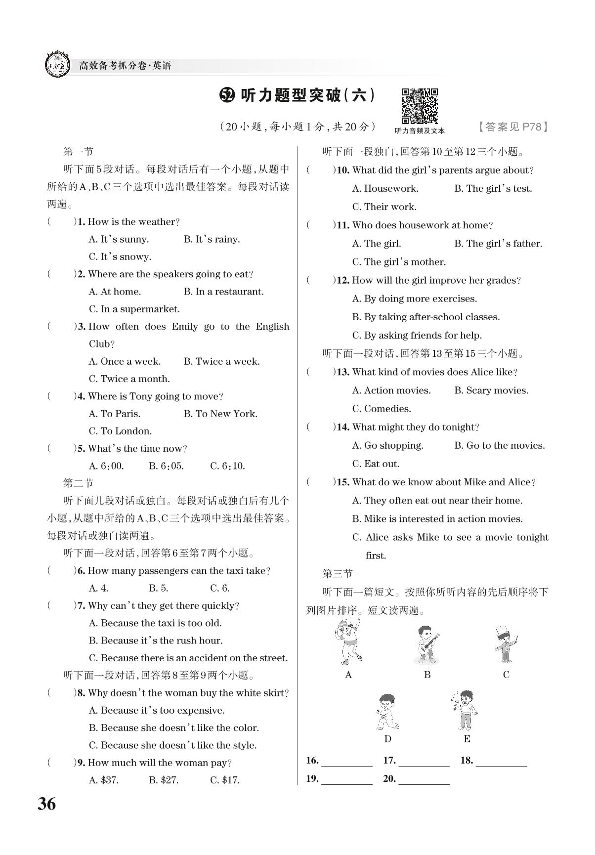 中考英语听力题型突破——听力题型突破(六)【52】
