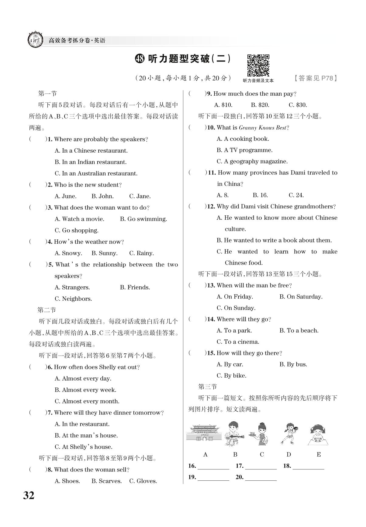 中考英语听力题型突破——听力题型突破(二)【48】