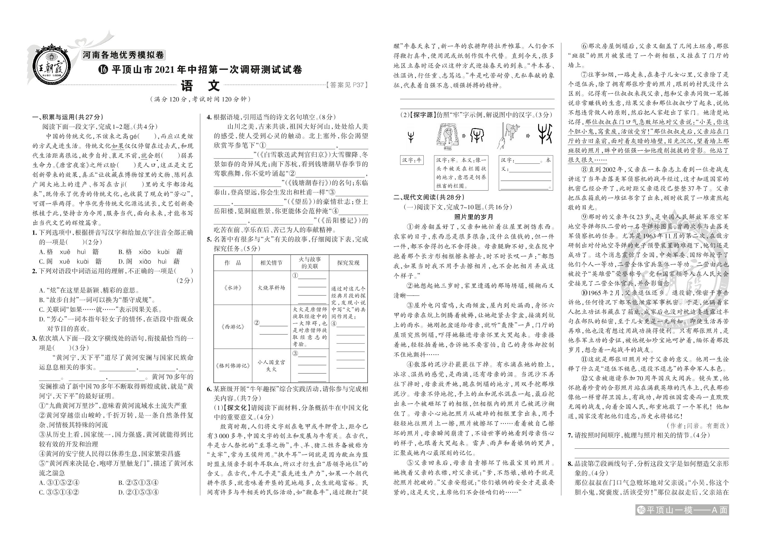 平顶山市2021年中招第一次调研测试试卷·语文【16】