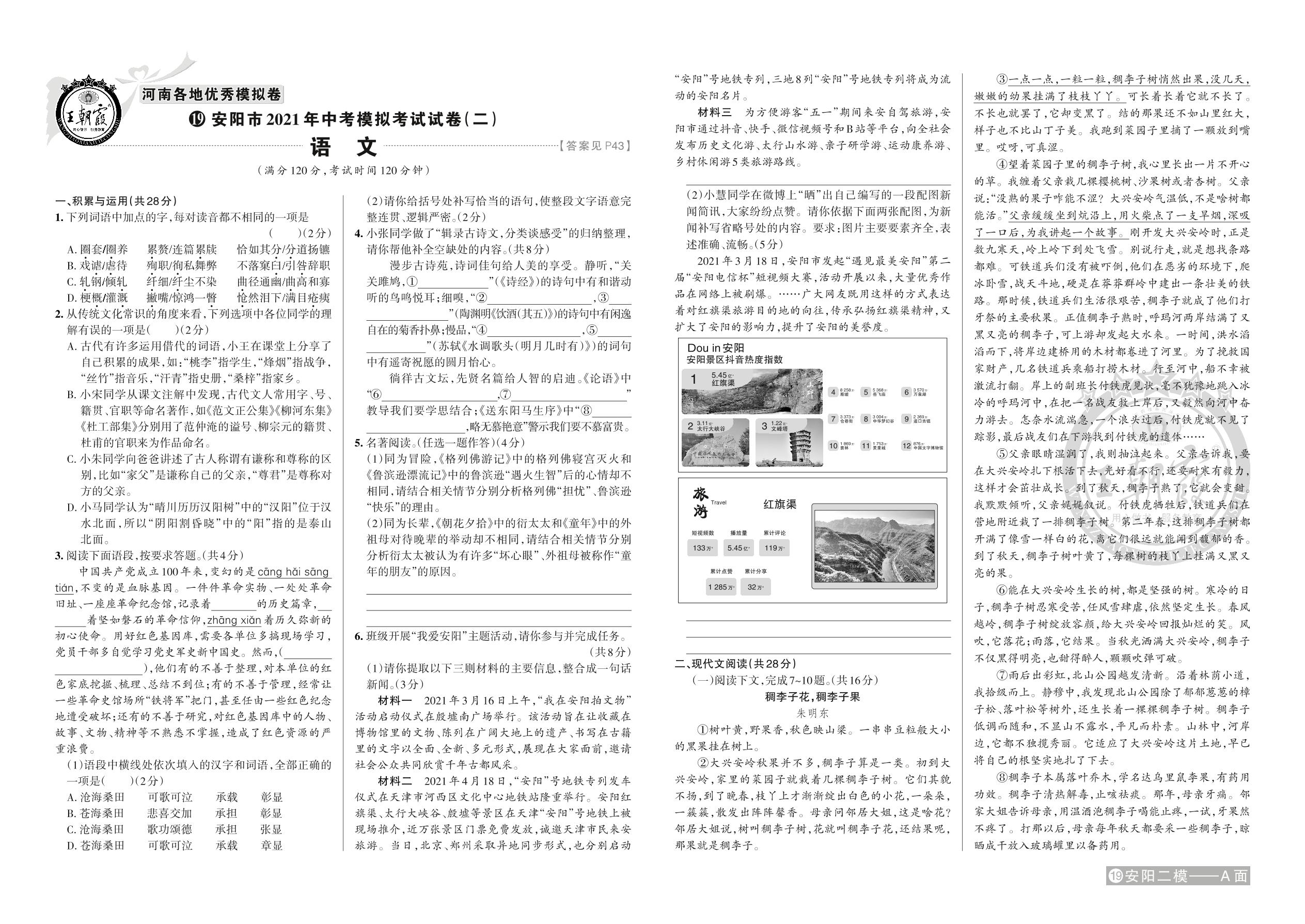 安阳市2021年中考模拟考试试卷(二)·语文【19】