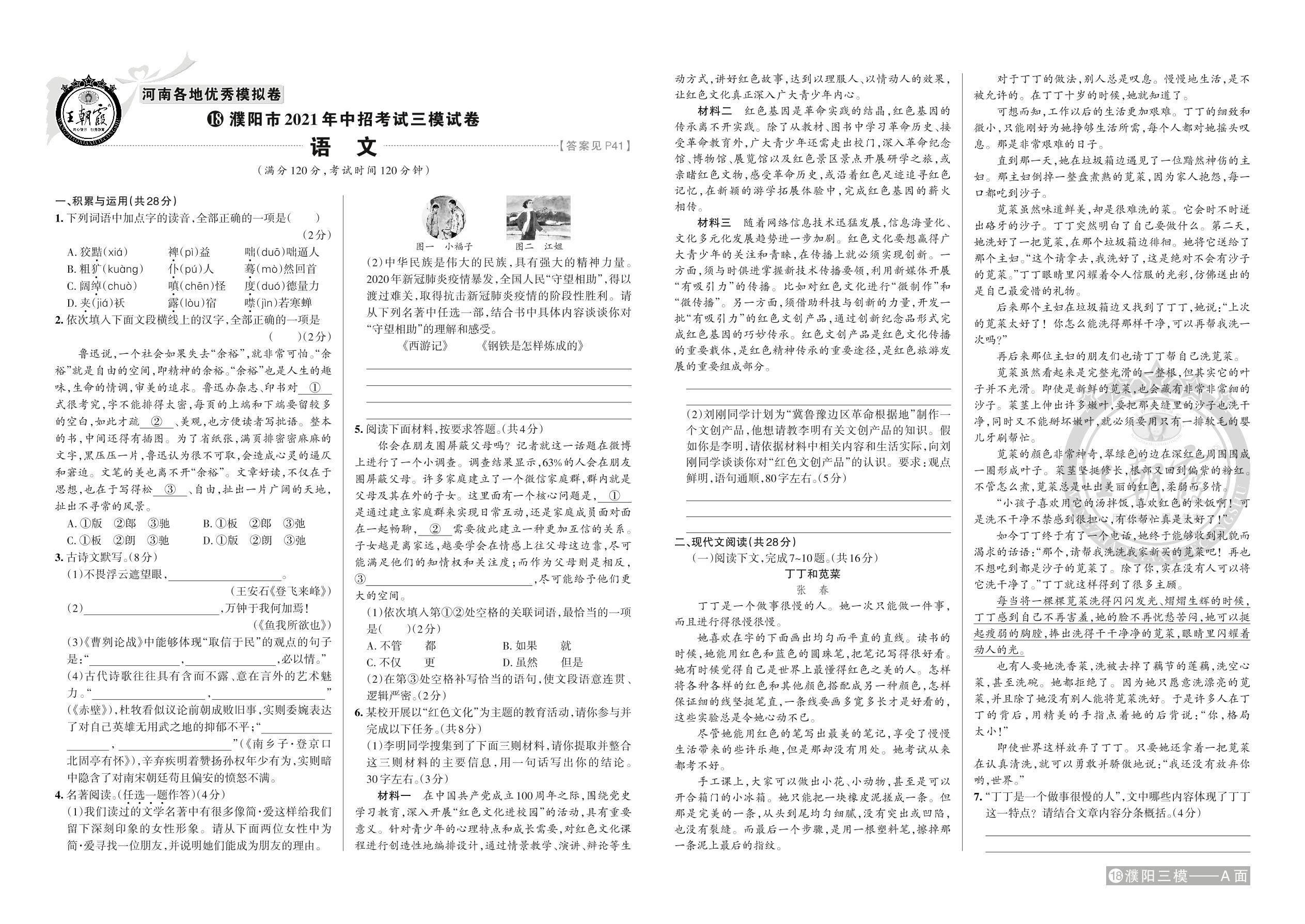 濮阳市2021年中招考试三模试卷·语文【18】