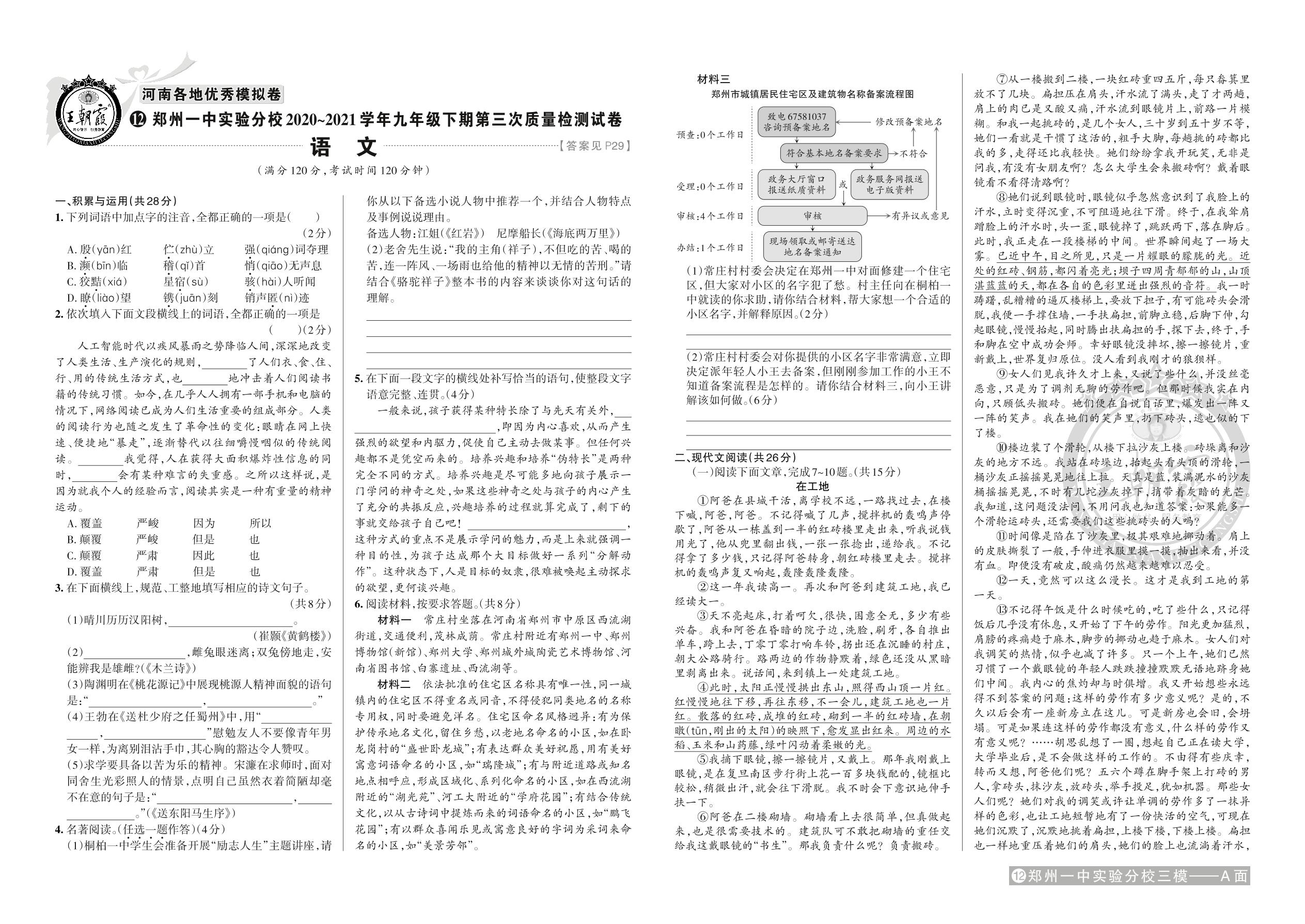 郑州一中实验分校2020~2021学年九年级下期第三次质量检测试卷·语文【12】