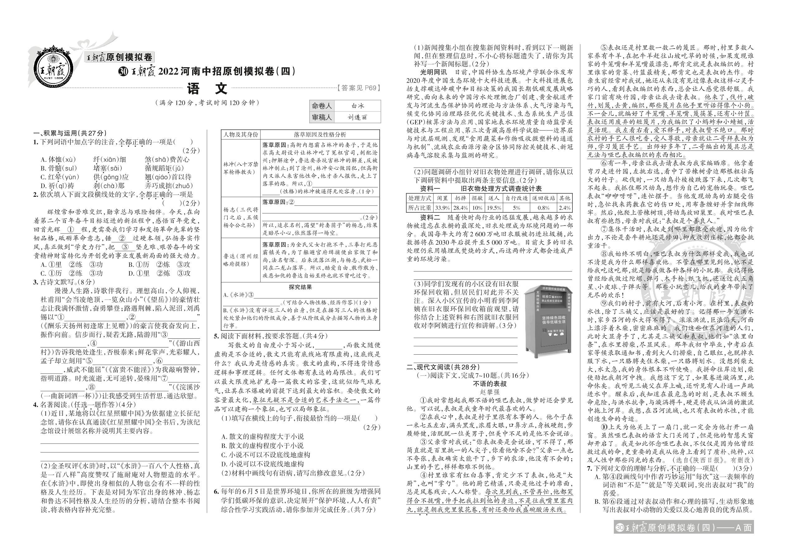 王朝霞2022河南中招原创模拟卷(四)·语文【30】